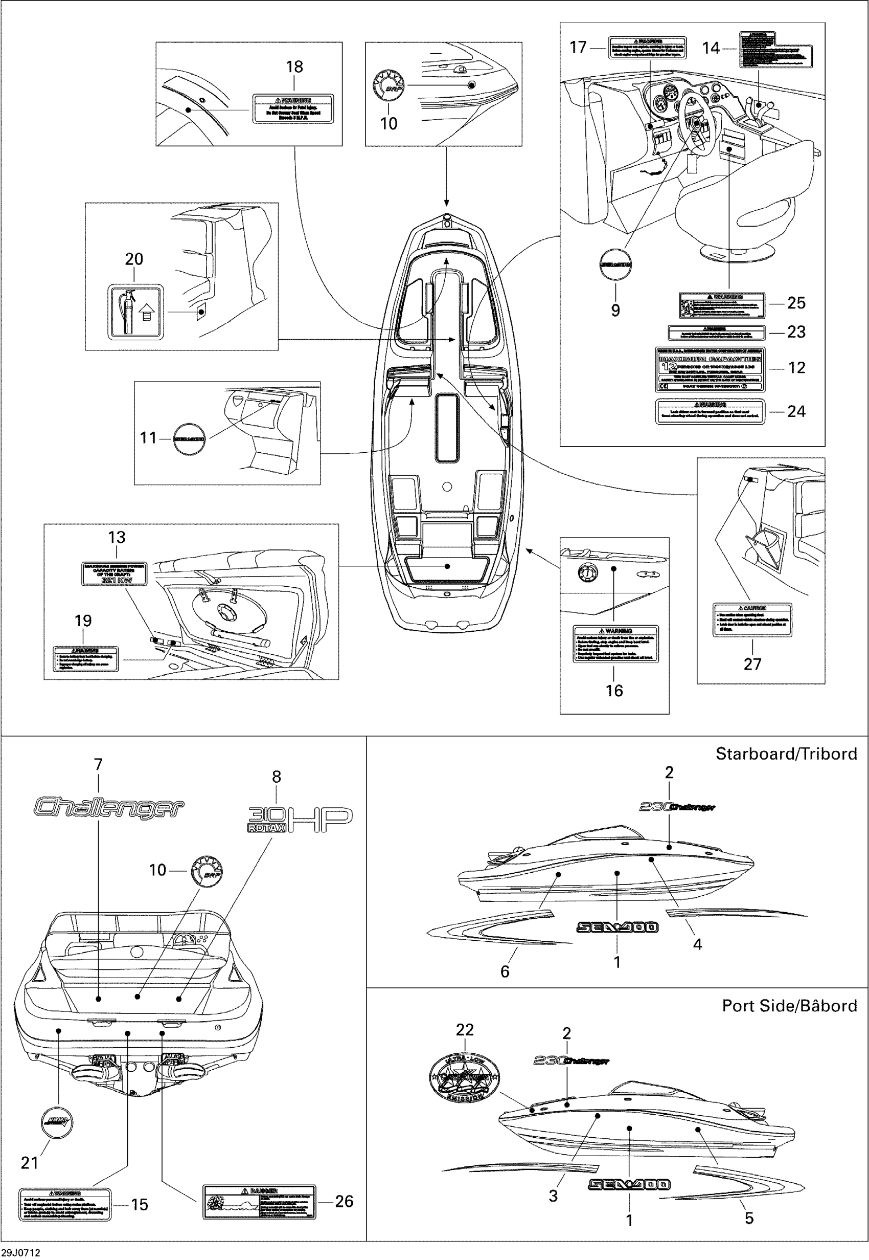 Sea-doo Challenger 230 155NA, 2007 09- Decals Diagram