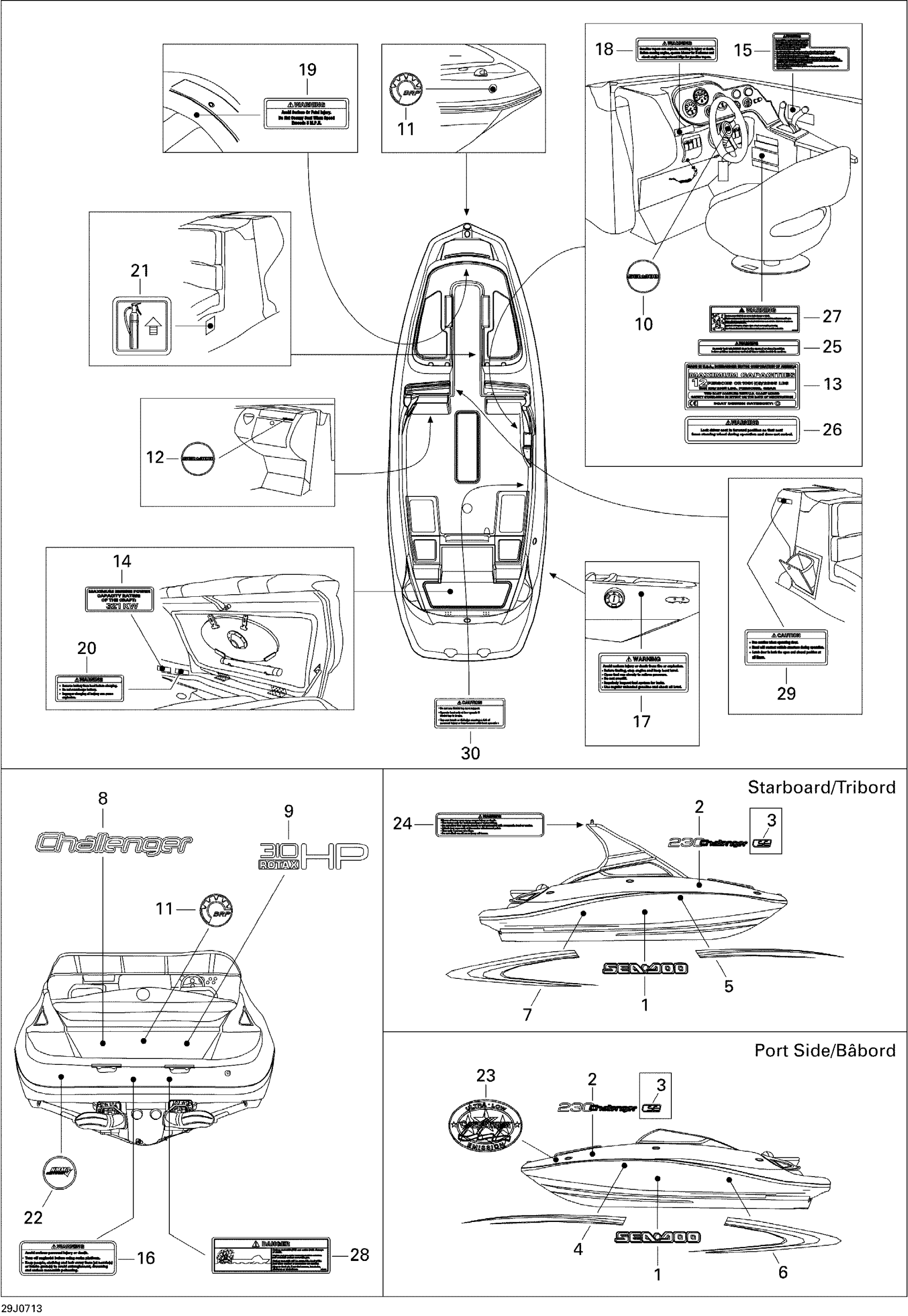 Sea-doo Challenger 230 SE 155NA, 2007 Decals Diagram