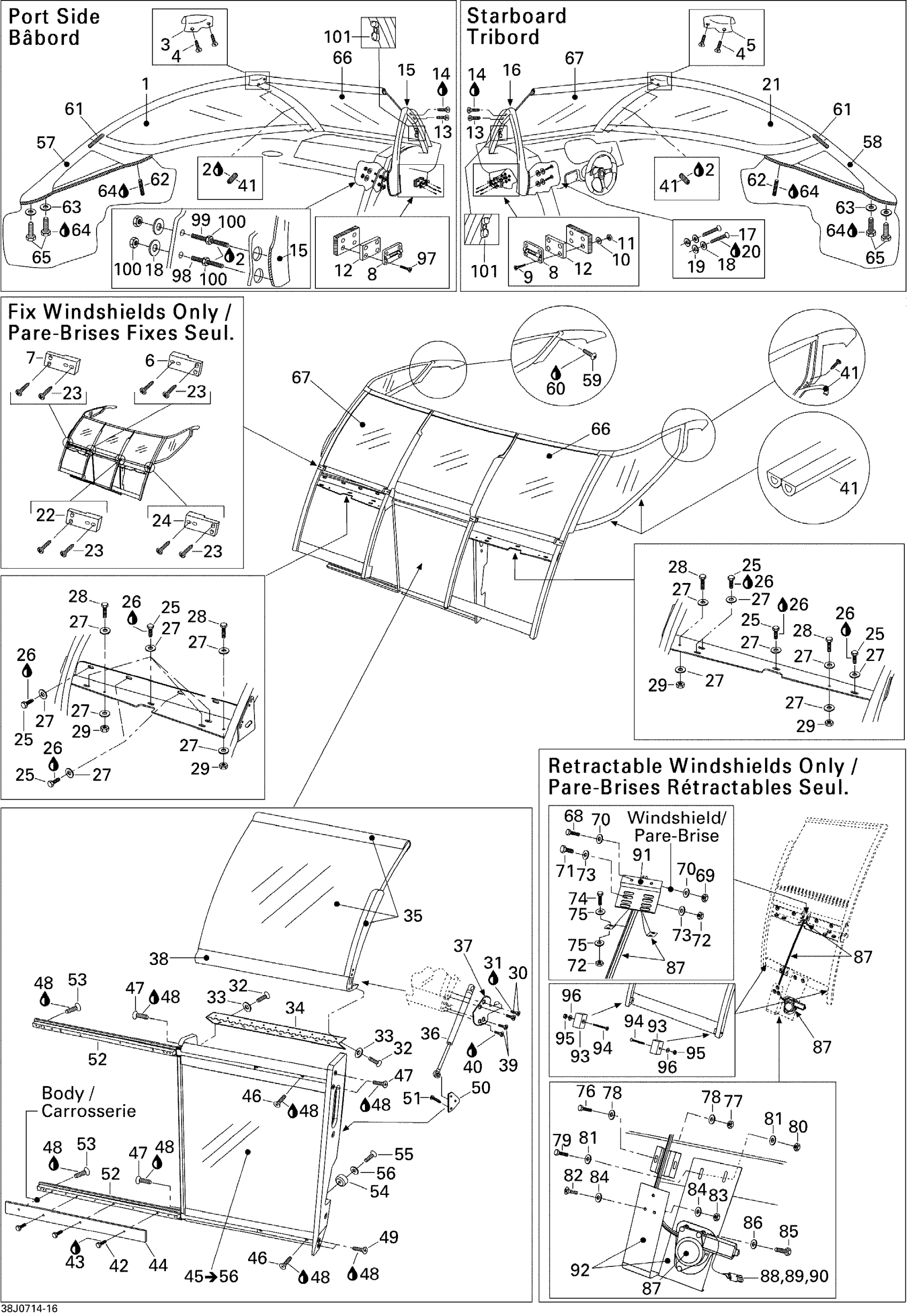Sea-doo Challenger 230 WAKE 155NA, 2007 09- Windshield Diagram