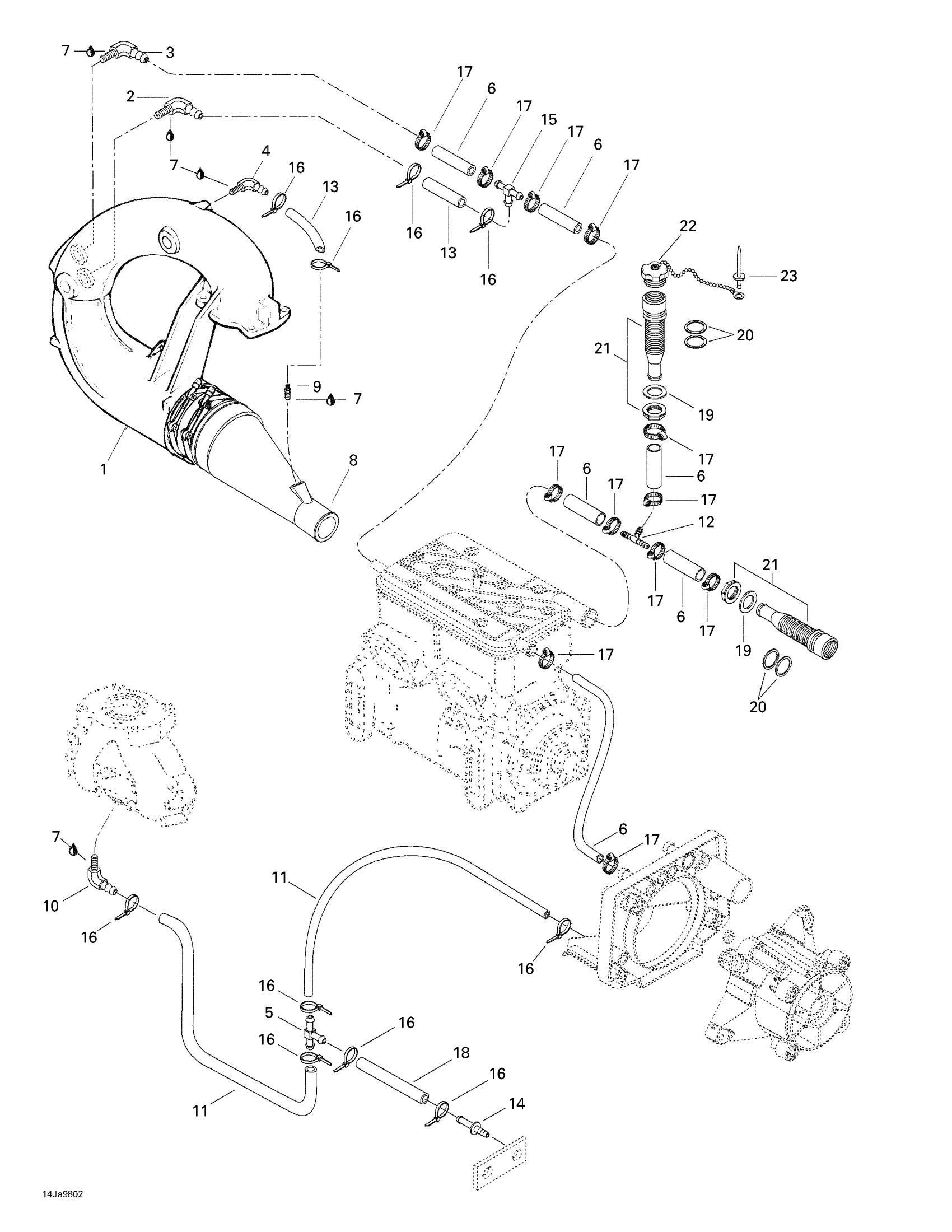 Sea-doo Challenger, 5612, 1998 Cooling System Diagram