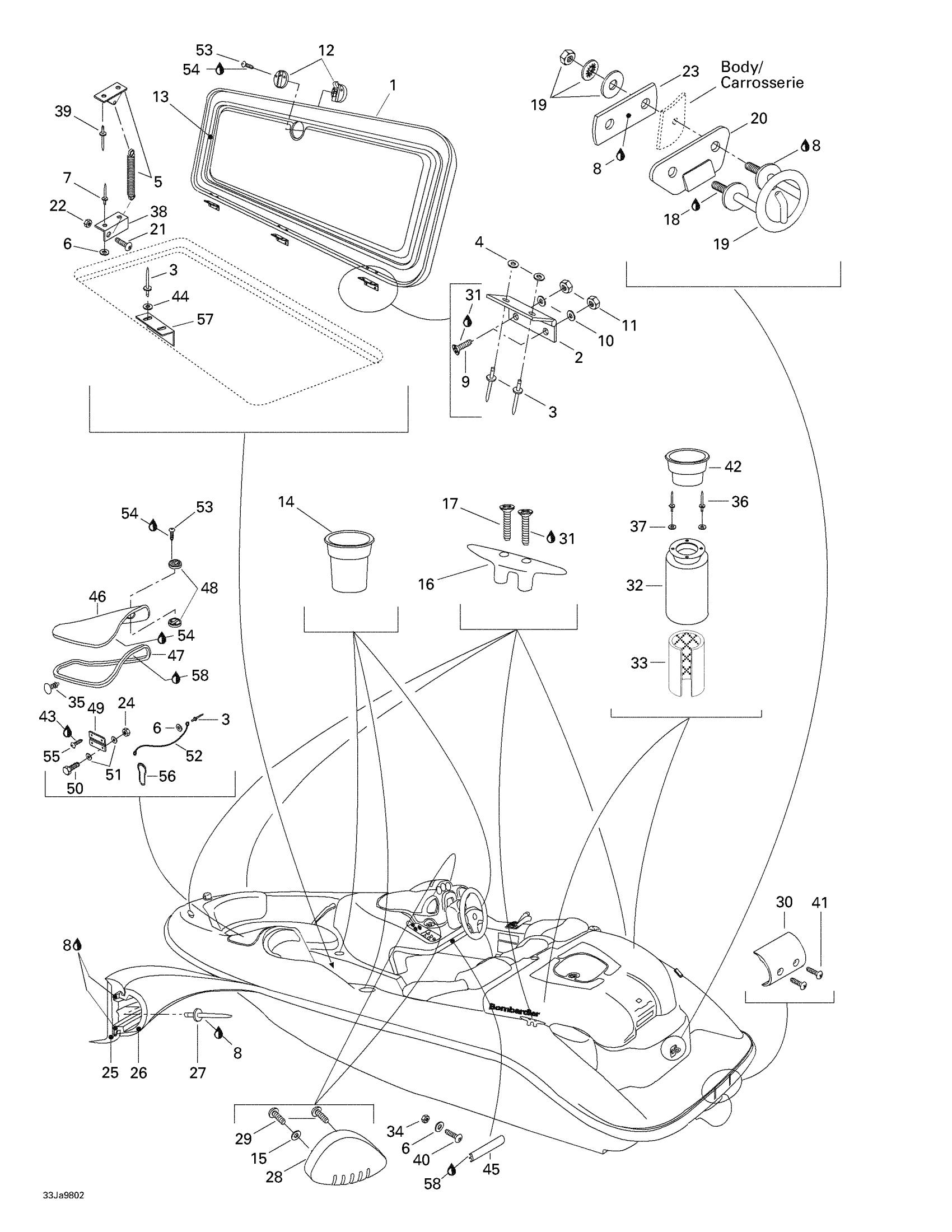 Sea-doo Challenger, 5612, 1998 Central Cover And Accessories Diagram