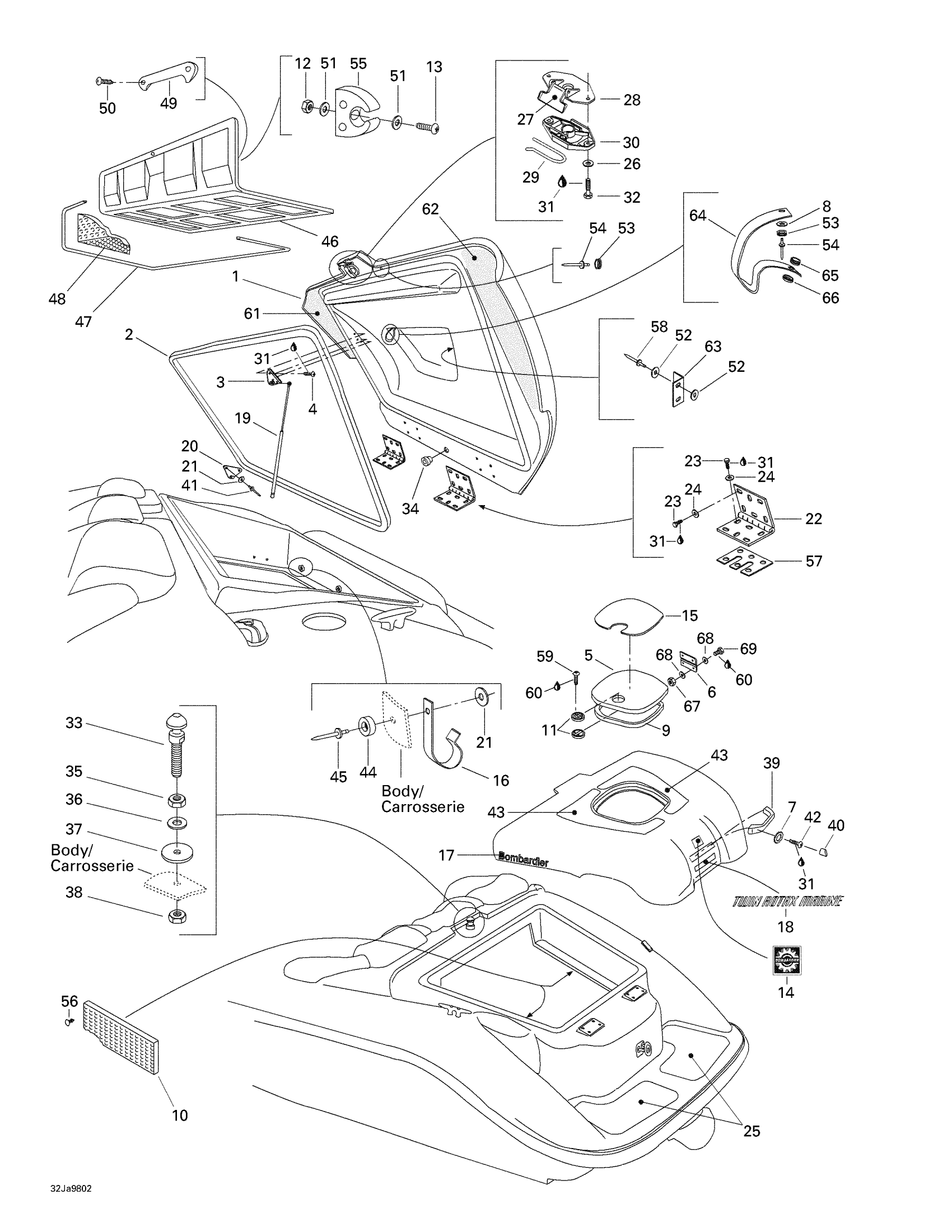 Sea-doo Challenger, 5612, 1998 Engine Compartment Diagram