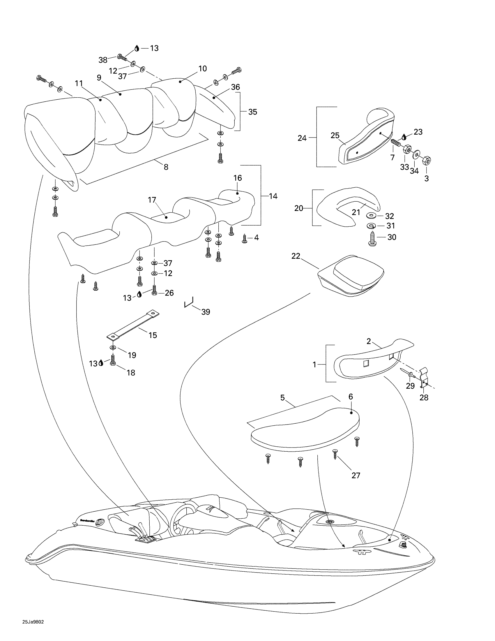 Sea-doo Challenger, 5612, 1998 Seats Diagram
