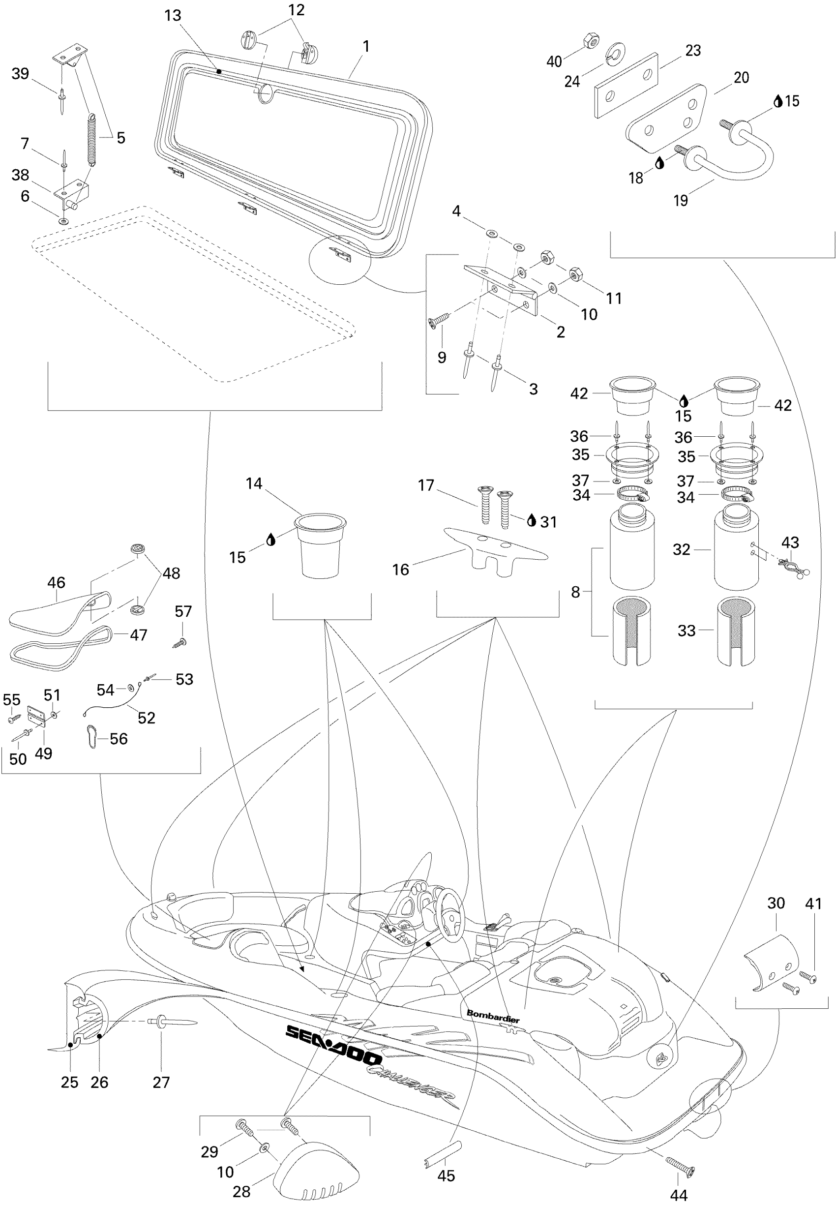 Sea-doo Challenger, 5896, 1996 09- Central Cover And Accessories Diagram