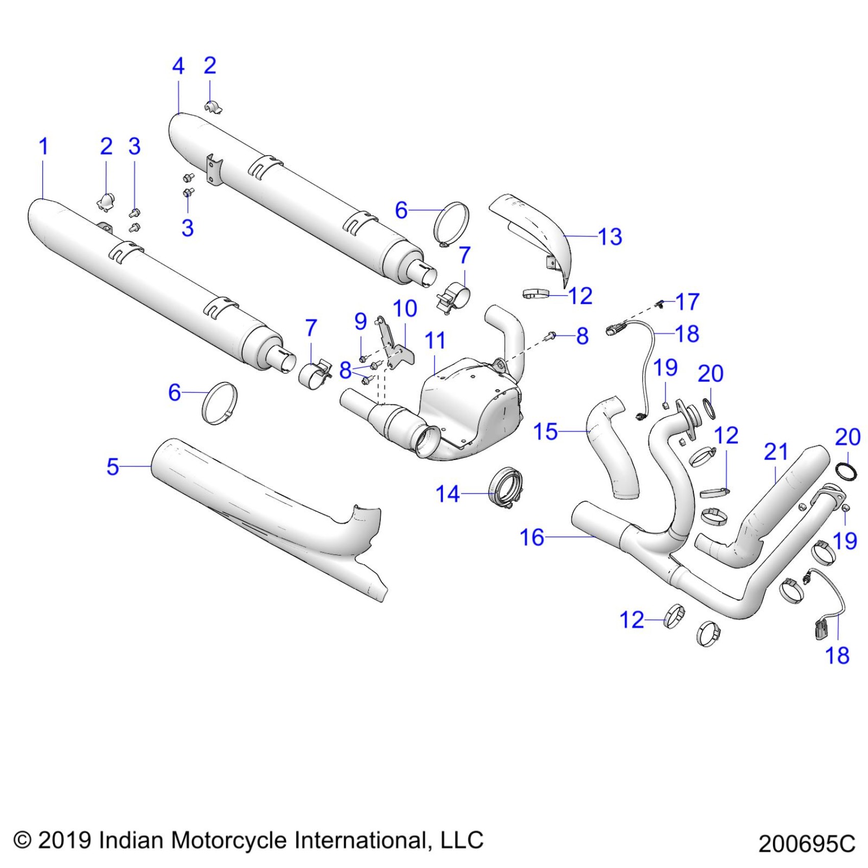 Polaris CHALLENGER BASE/LIMITED (R11) - N20LCARRA1/2/5/B1/2/5/C1/2/5/E1/2/5/BRRAT/BT/CT/ET ENGINE, EXHAUST - N20LCARR/N20LCBRR ALL OPTIONS (200695C) Diagram