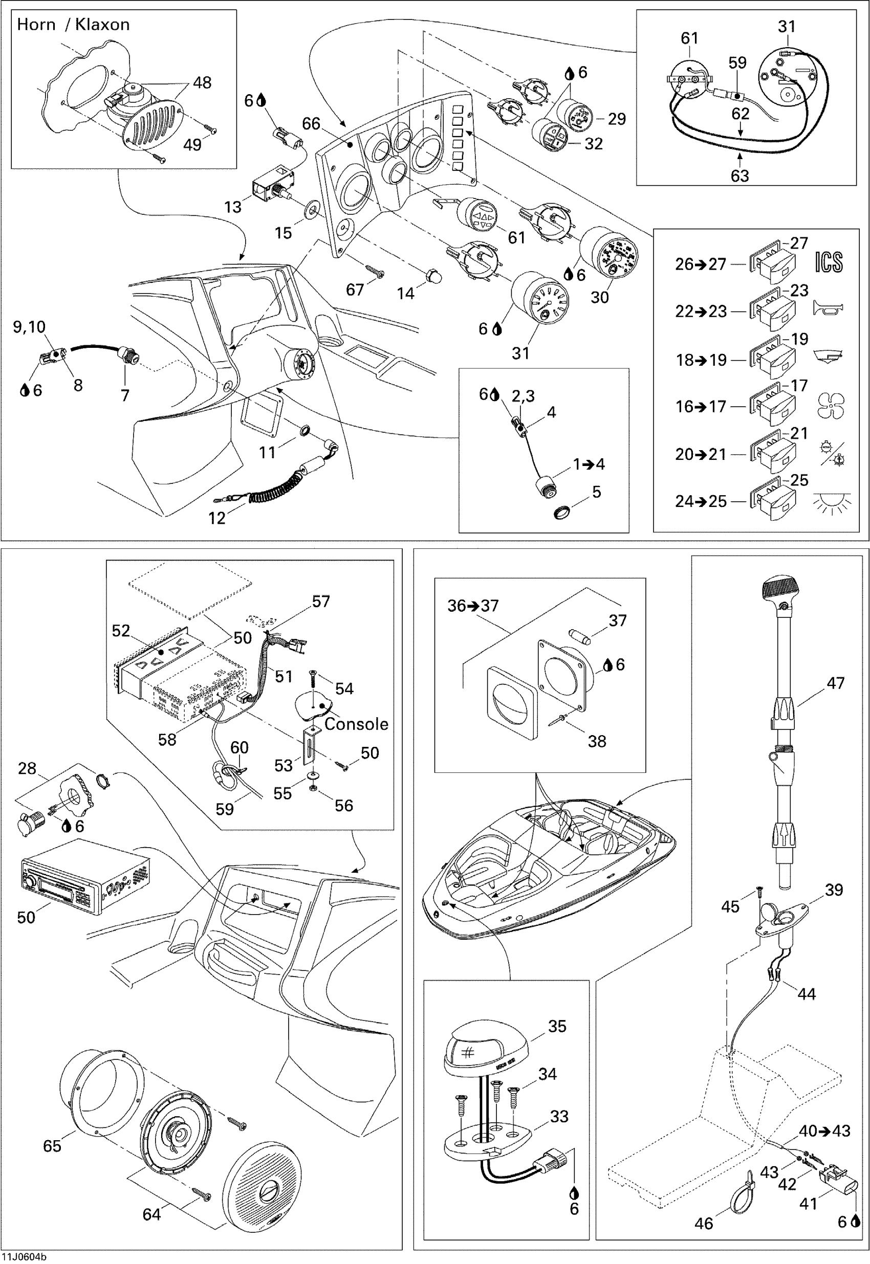 HORN SWITCH ASS'Y - Call your local BRP dealership | Includes 22 to 23