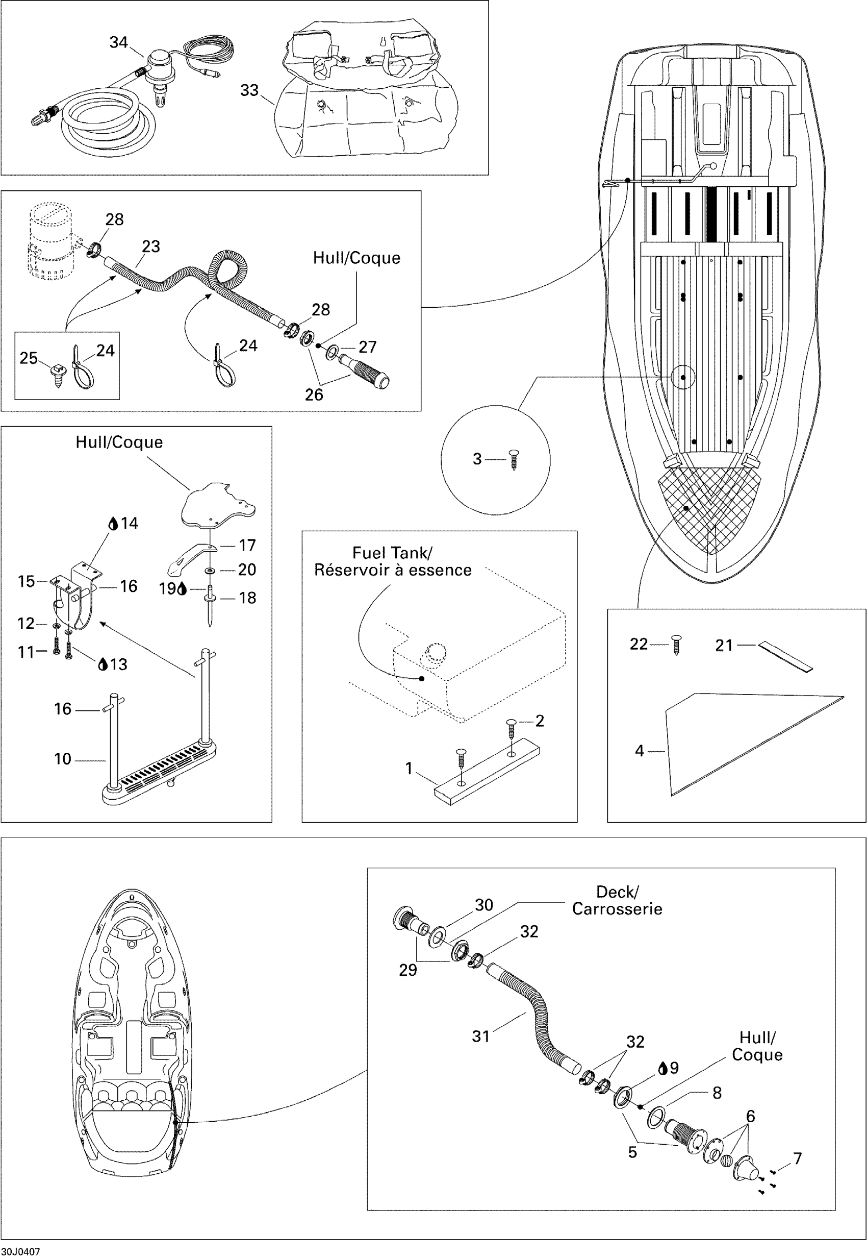 Sea-doo Challenger X 240 EFI/250 Optimax, 2004 09- Lower Hull and Ladder Diagram