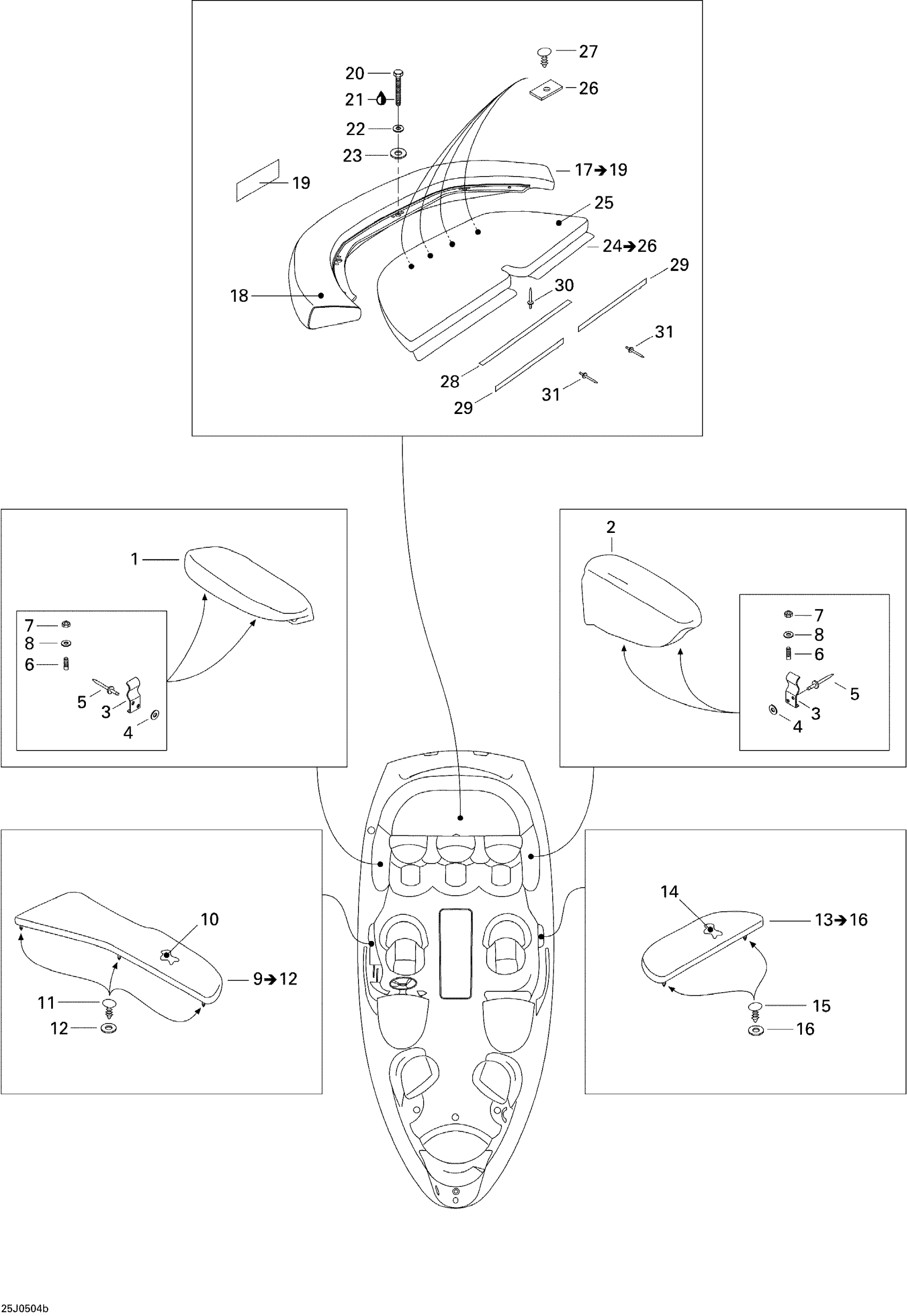 Sea-doo Challenger X, 250 Optimax, 2005 09- Seat 2 Diagram