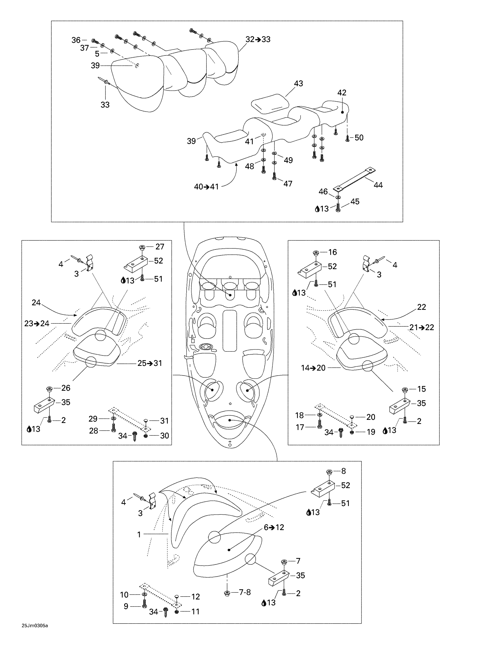 Sea-doo Challenger X, 5778/5779, 2003 09- Seat (front And Rear) Diagram