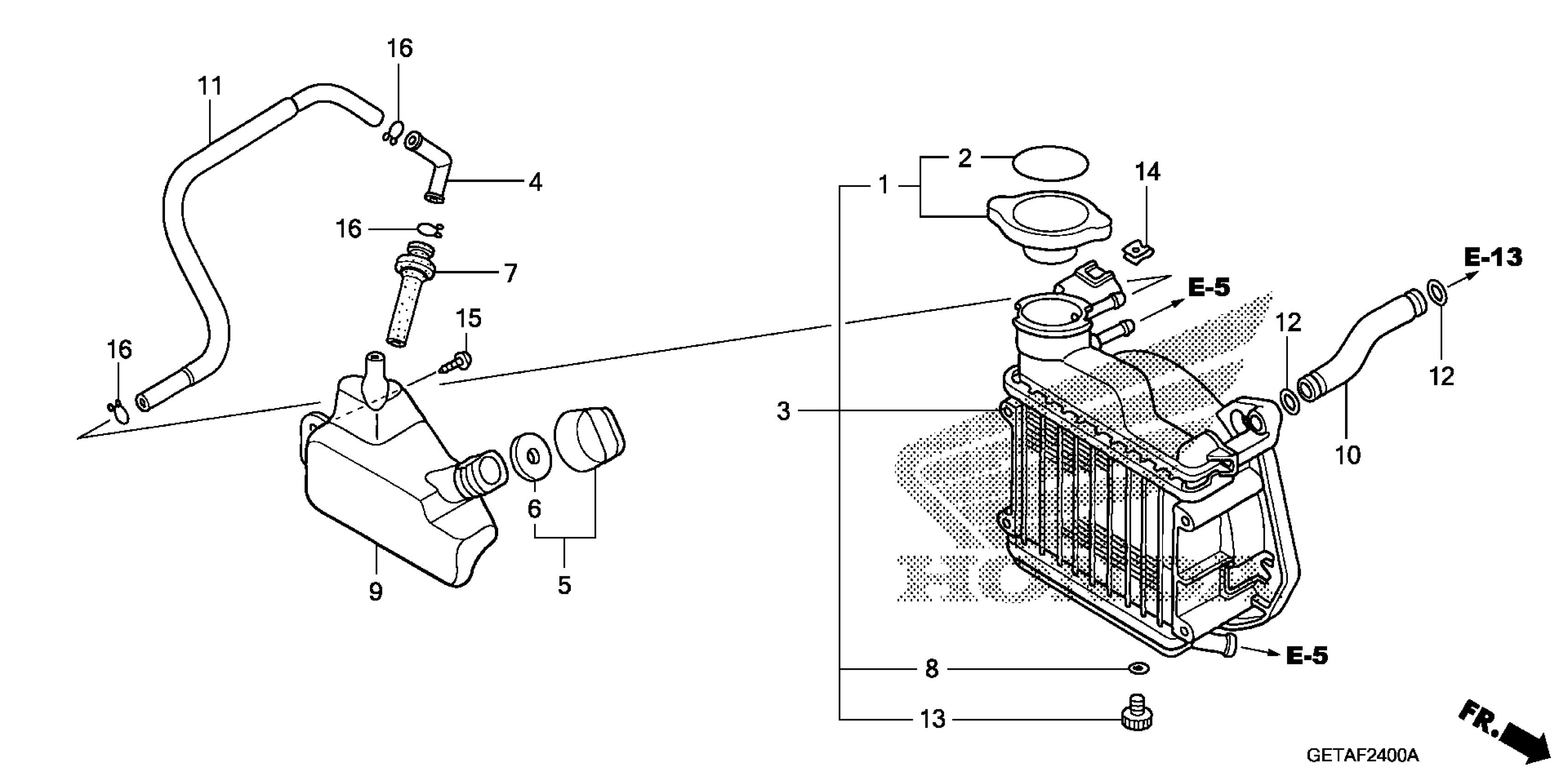 Honda CHF50A (09) METROPOLITAN, JPN, VIN# JH2AF600-9K700001 RADIATOR Diagram