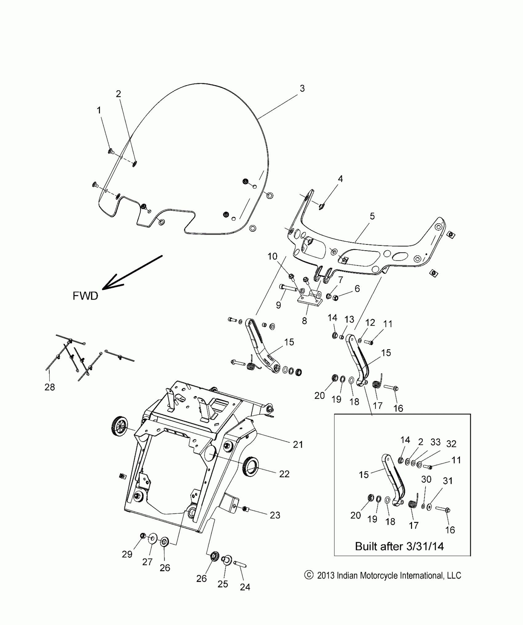 Polaris CHIEF CLASSIC/CHIEF VINTAGE/CHIEFTAIN ALL OPTIONS - N14CCC/CCV/TCA BODY, FAIRING ASM, WINDSHIELD MOUNT - N14TCA ALL OPTIONS (49INDIANWINDSHIELD14TOUR) Diagram