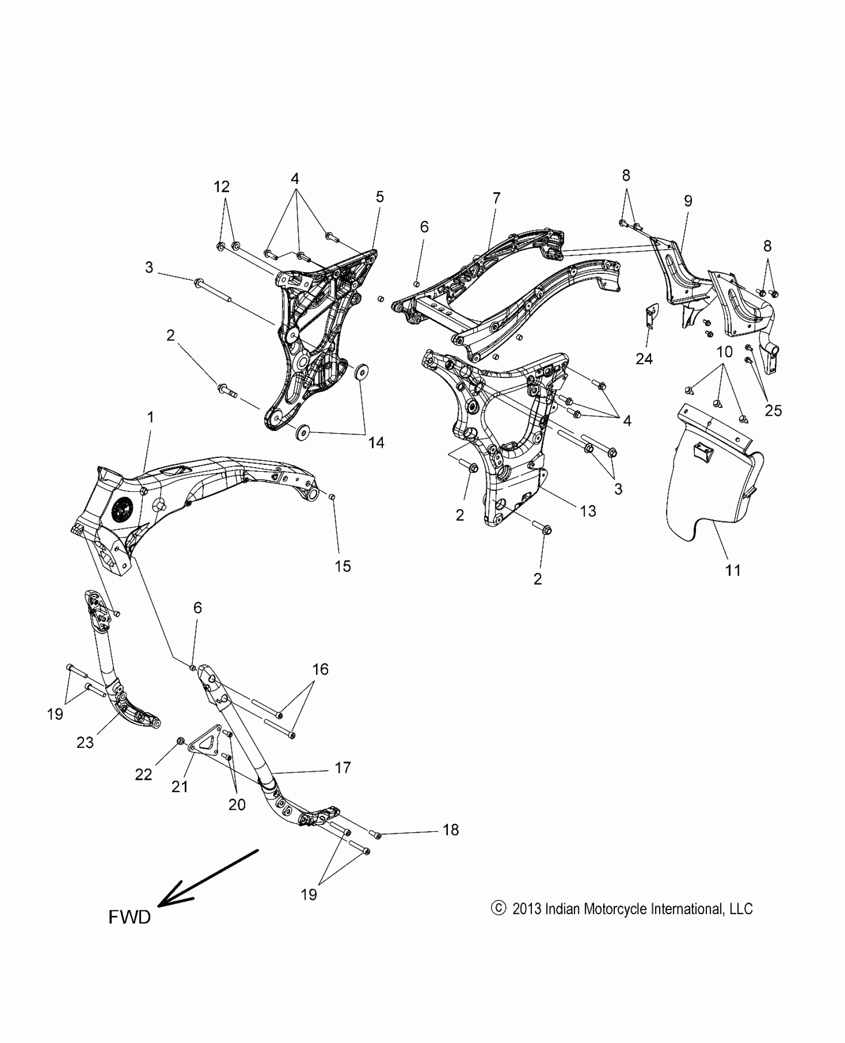 Polaris CHIEF CLASSIC/CHIEF VINTAGE/CHIEFTAIN ALL OPTIONS - N14CCC/CCV/TCA CHASSIS, FRAME ASM. - N14CCC/CCV/TCA ALL OPTIONS (49INDIANFRAME14) Diagram