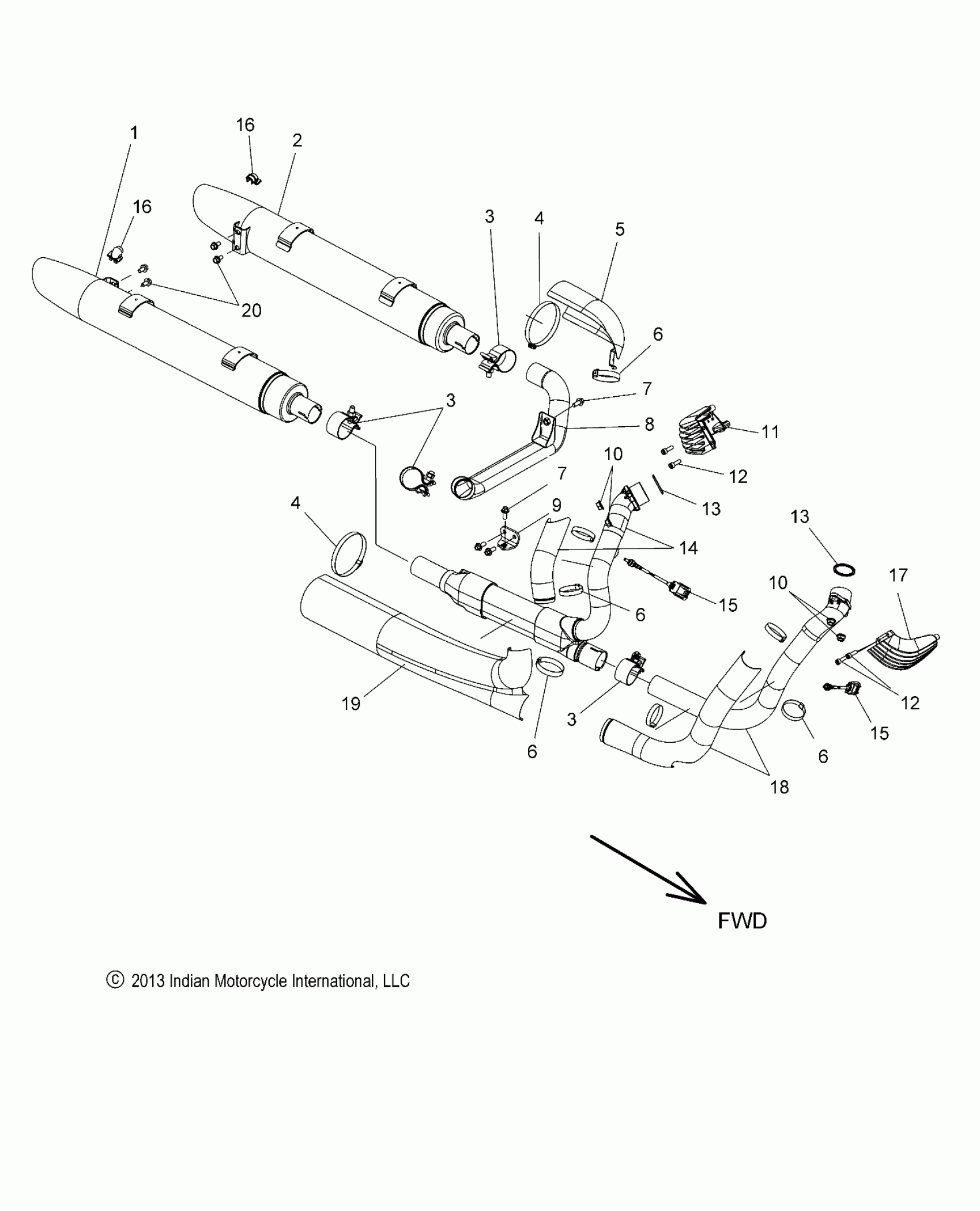 Polaris CHIEF CLASSIC/CHIEF VINTAGE/CHIEFTAIN ALL OPTIONS - N14CCC/CCV/TCA ENGINE, EXHAUST - N14CCC/CCV/TCA ALL OPTIONS (49INDIANEXHAUST14) Diagram