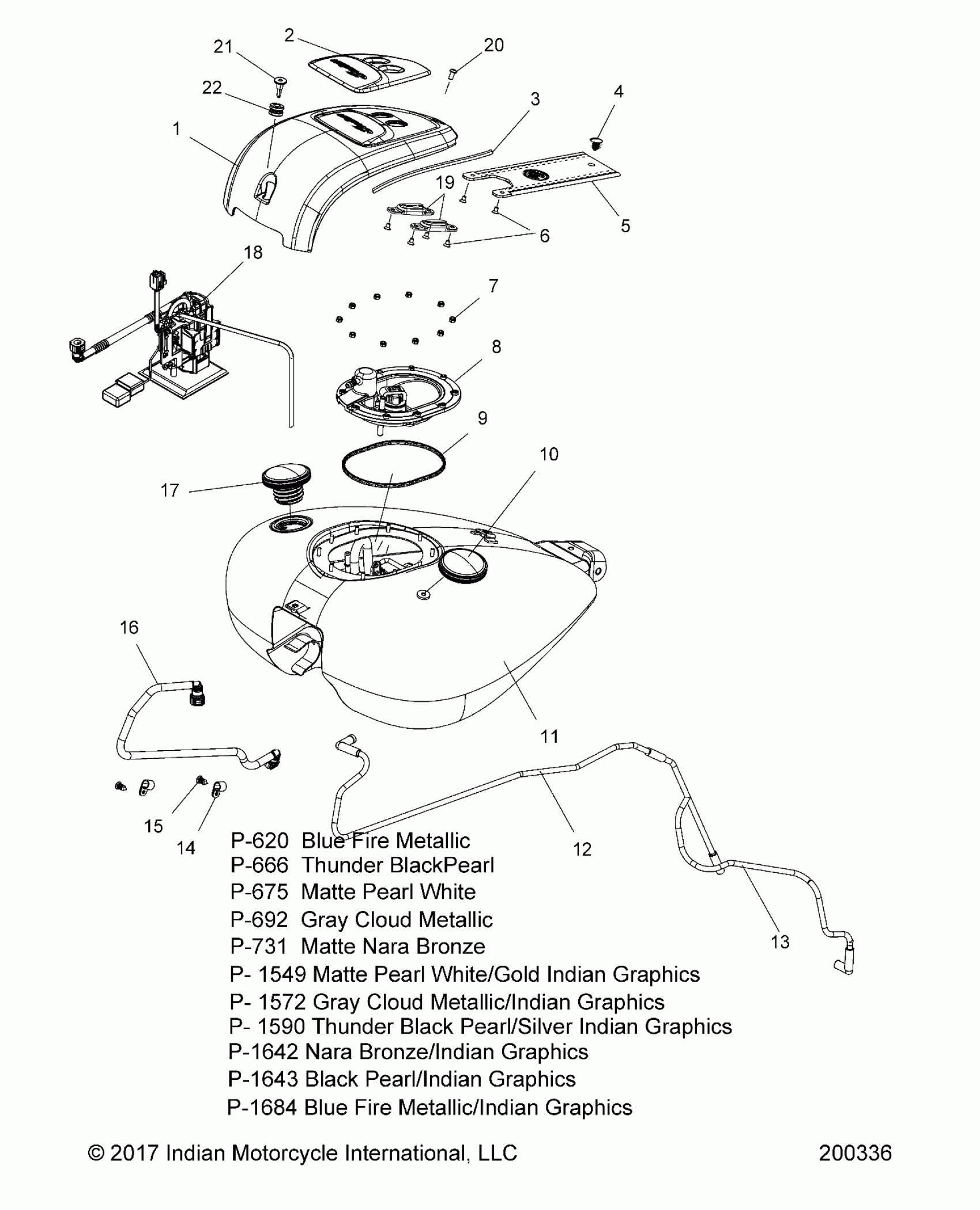 Polaris CHIEFTAIN/CHIEFTAIN LIMITED ALL OPTIONS (R05) - N18TCAAAA1/6/7/9/A/L/T/Z/B1/6/7/9/L/T/C1/6/7/9/L/T/E1/6/7/9/L/T/BAAAX/BX/CX/EX FUEL SYSTEM, FUEL TANK ASM. - N18TCAA/TCBA ALL OPTIONS (200336) Diagram
