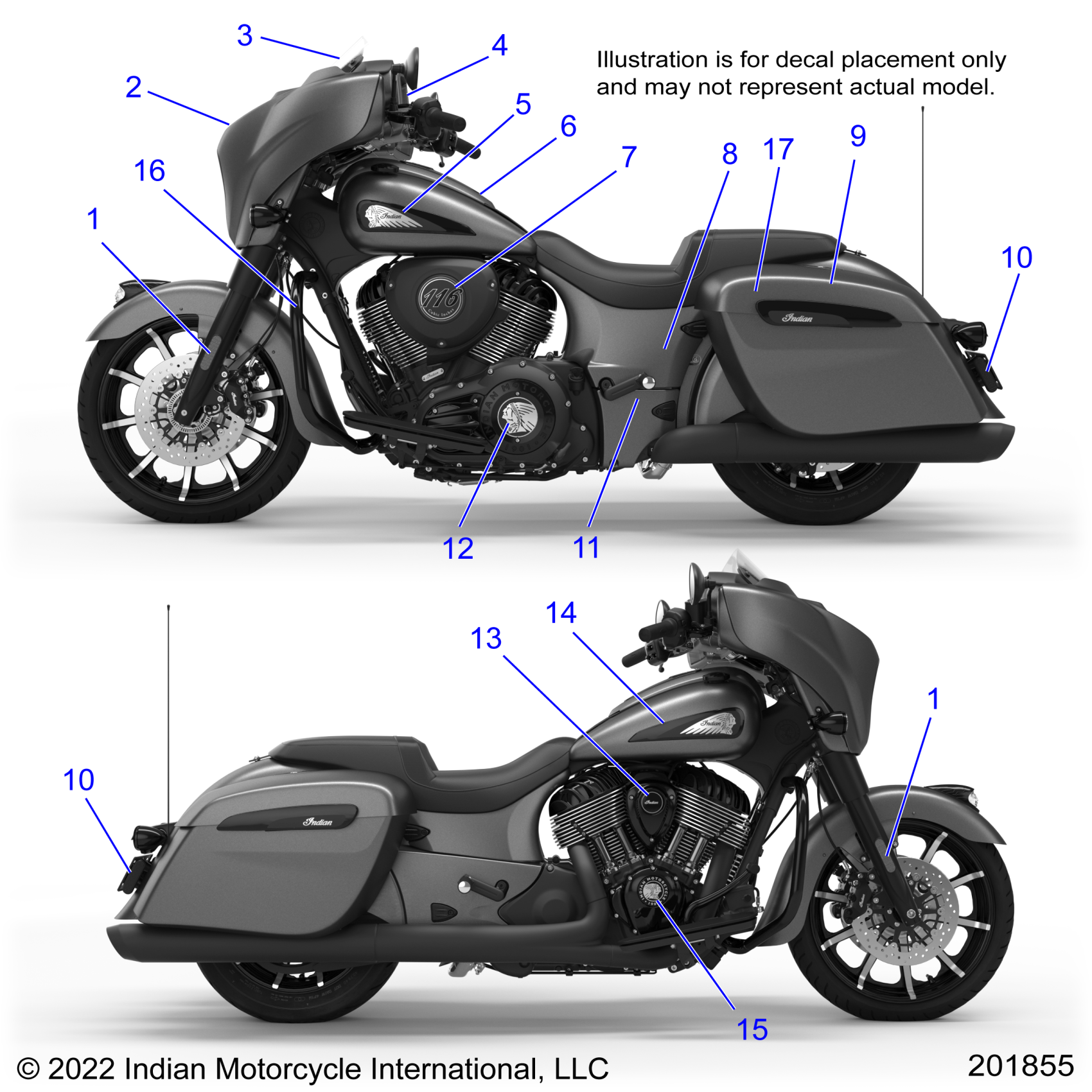 Polaris CHIEFTAIN DARK HORSE ALL OPTIONS (R01) - N23TCDBBAG/H/J/K/L/M/R/BG/H/J/K/L/M/R/CG/H/J/K/L/M/R/EG/H/J/K/L/M/R/JG/H/J/K/L/M/R/XG/H/J/K/L/M/R BODY, EMBLEMS/DECALS - N23TCDBB ALL OPTIONS (201855) Diagram