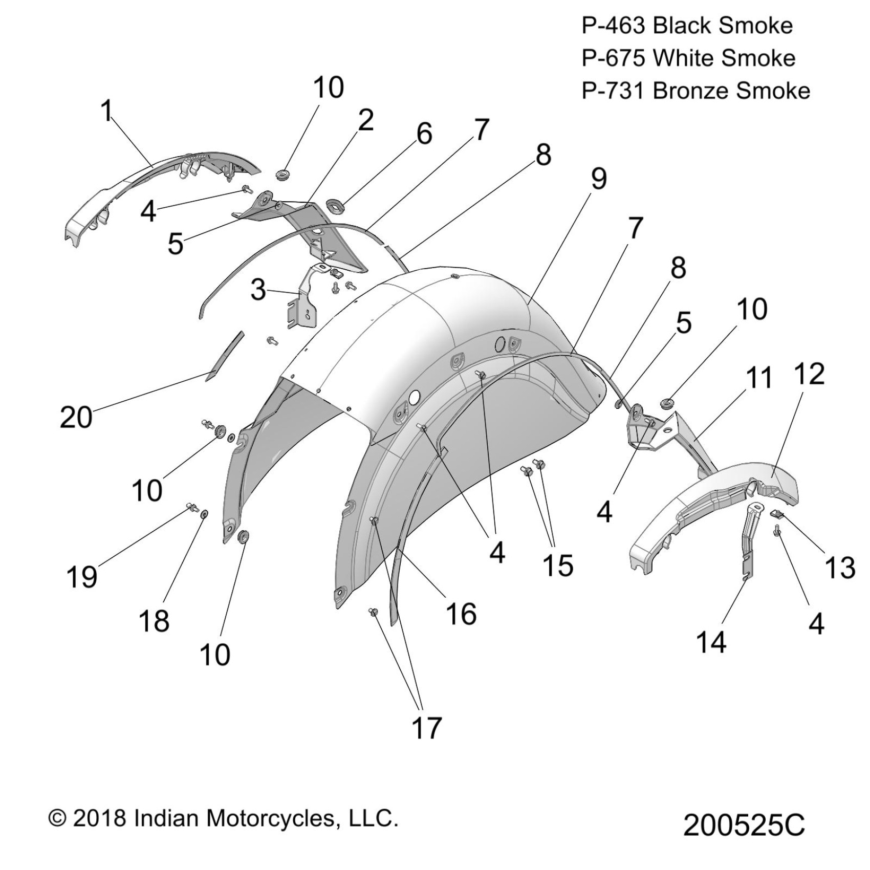 Polaris CHIEFTAIN DARK HORSE ALL OPTIONS (R07) - N19TCDAAA6/H/L/B6/H/L/C6/H/L/E6/H/L BODY, FENDER, REAR - N19TCDAA ALL OPTIONS (200525C) Diagram