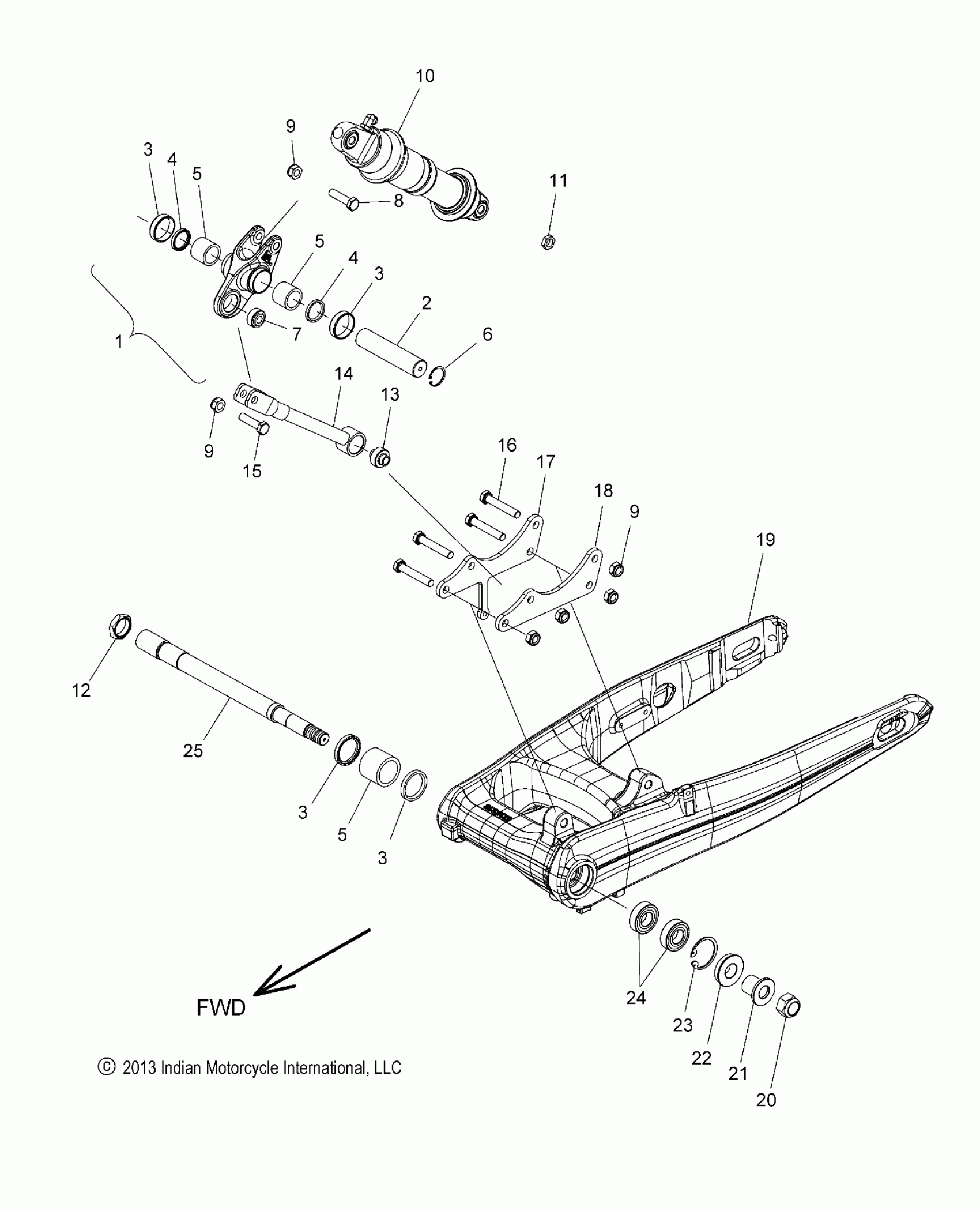 SUSPENSION, REAR ASM., SWING ARM and SHOCK - N15TCAAA/TRAAA ALL OPTIONS (49INDIANSUSPRR14)