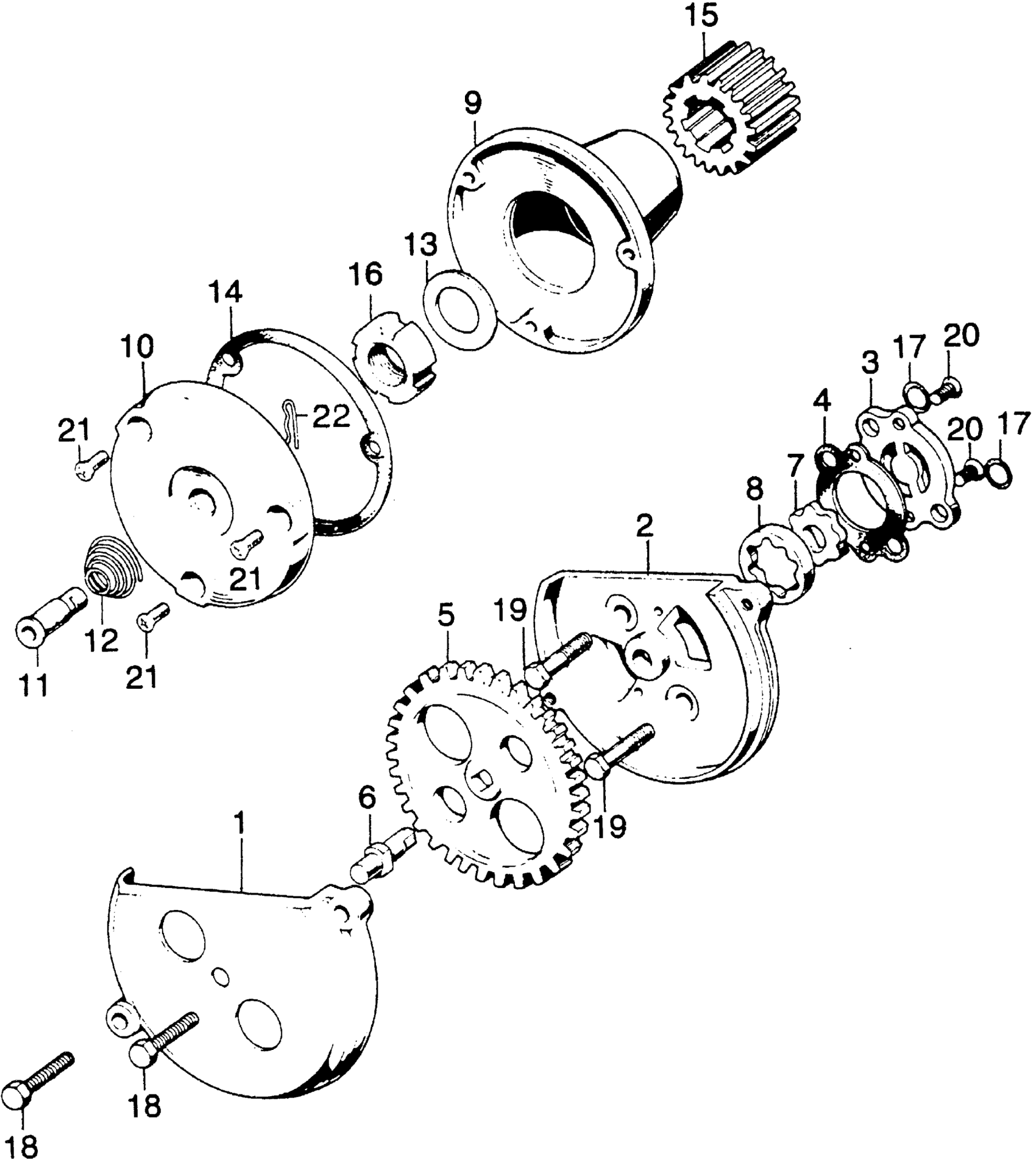 Honda CL125S1A MOTORCYCLE, JPN, VIN# CL125S-1100001 OIL FILTER ROTOR + OIL PUMP Diagram