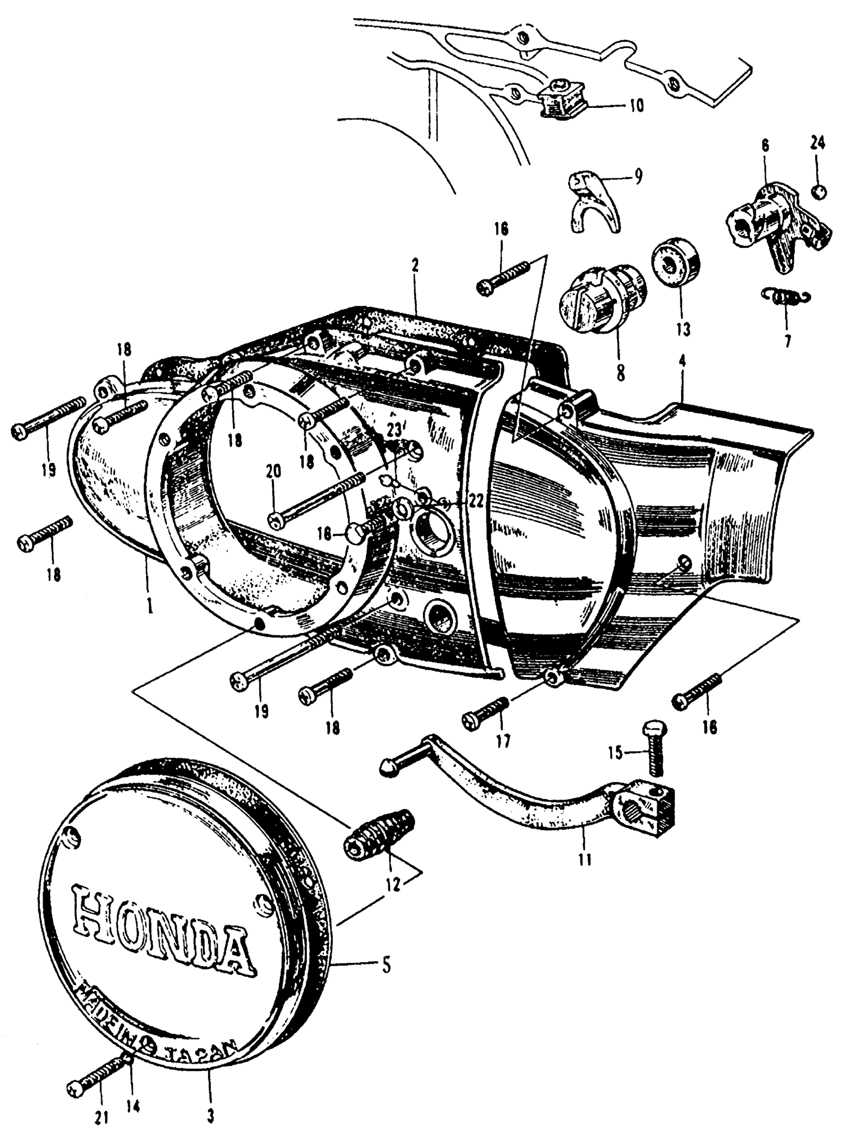 Honda CL160A MOTORCYCLE, JPN, VIN# CL160-1000001 CLUTCH ADJUSTER + LEFT CRANKCASE COVER Diagram