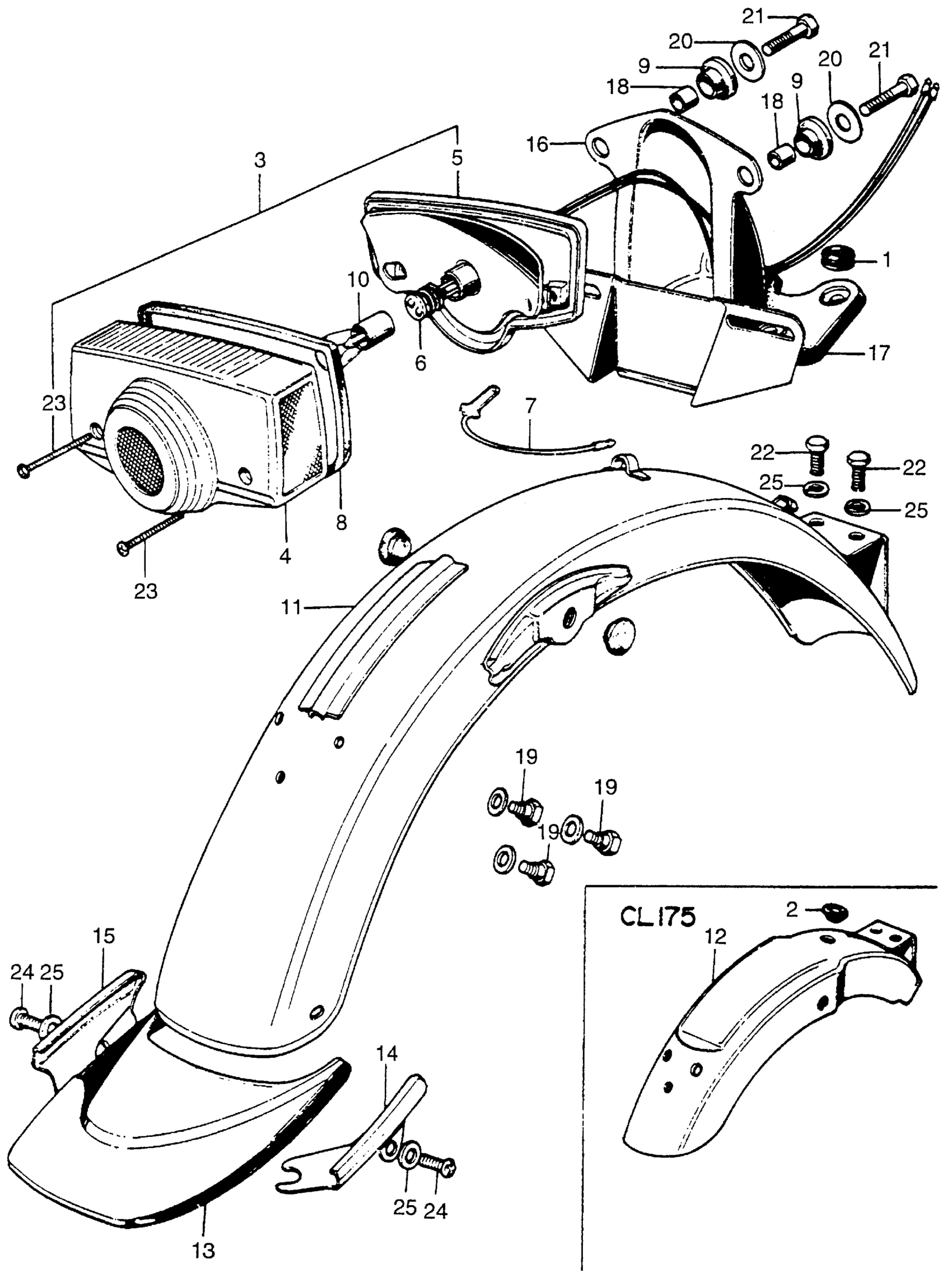 CB/CL175REAR FENDER + TAILLIGHT