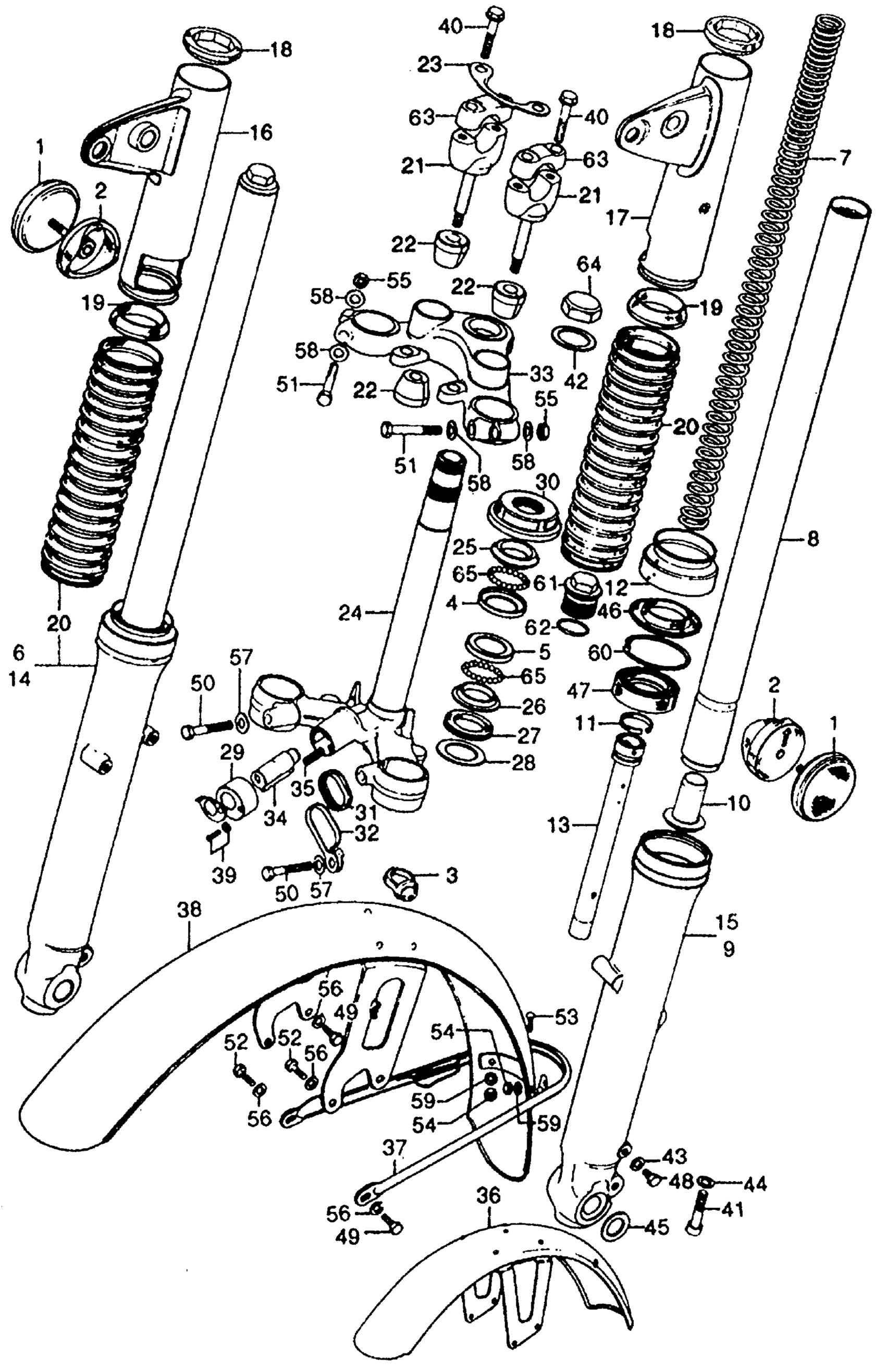 STEERING STEM + FRONT FENDER + FRONT FORK