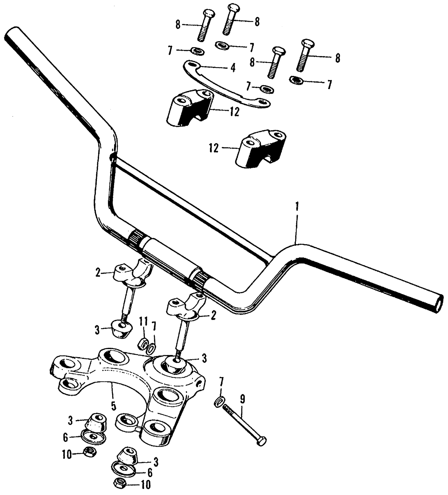 Honda CL450A MOTORCYCLE, JPN, VIN# CL450-1000001 HANDLEBAR + TOP BRIDGE Diagram