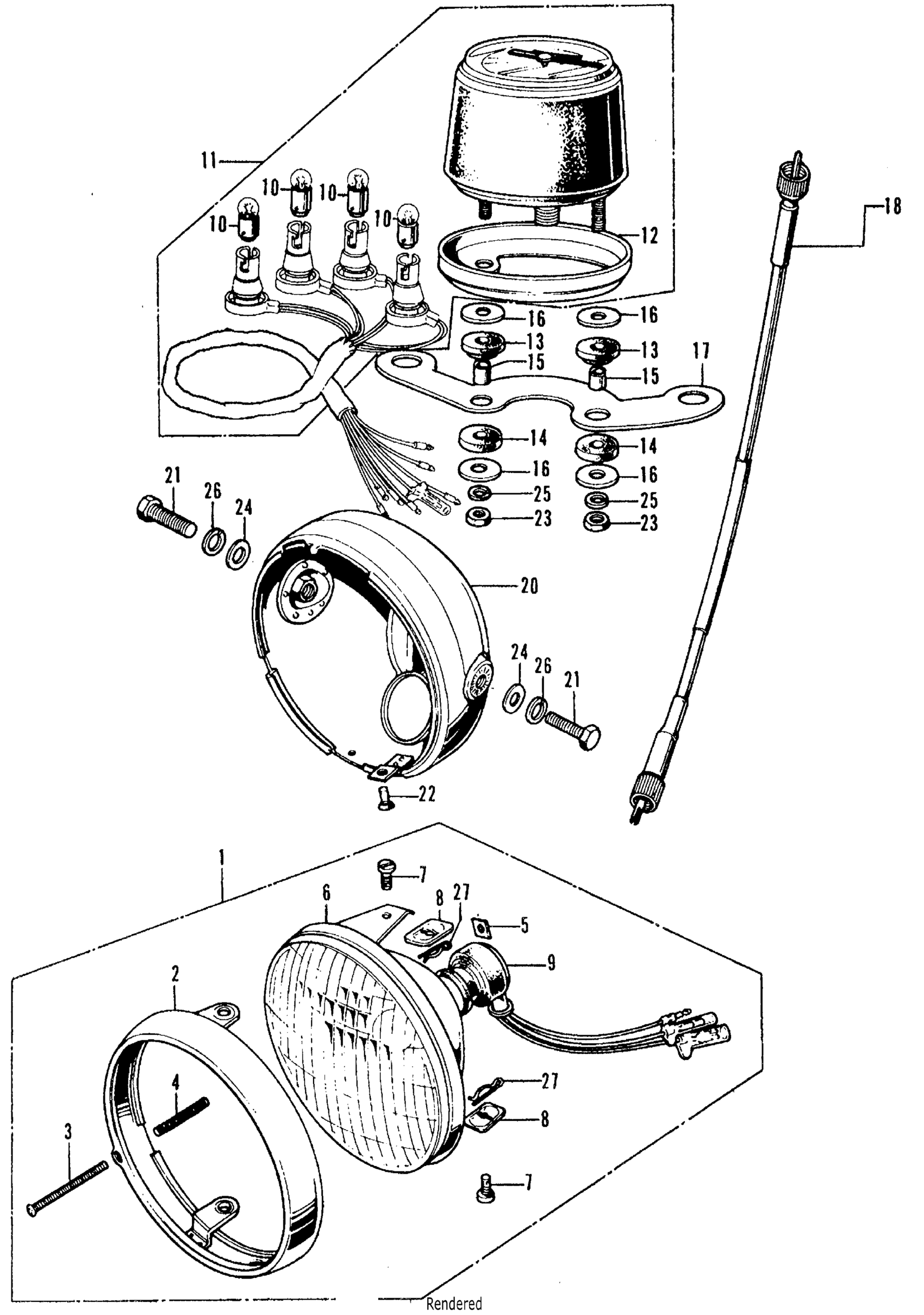 Honda CL70K3A MOTORCYCLE, JPN, VIN# CL70-1300001 HEADLIGHT + SPEEDOMETER K1-K3 Diagram