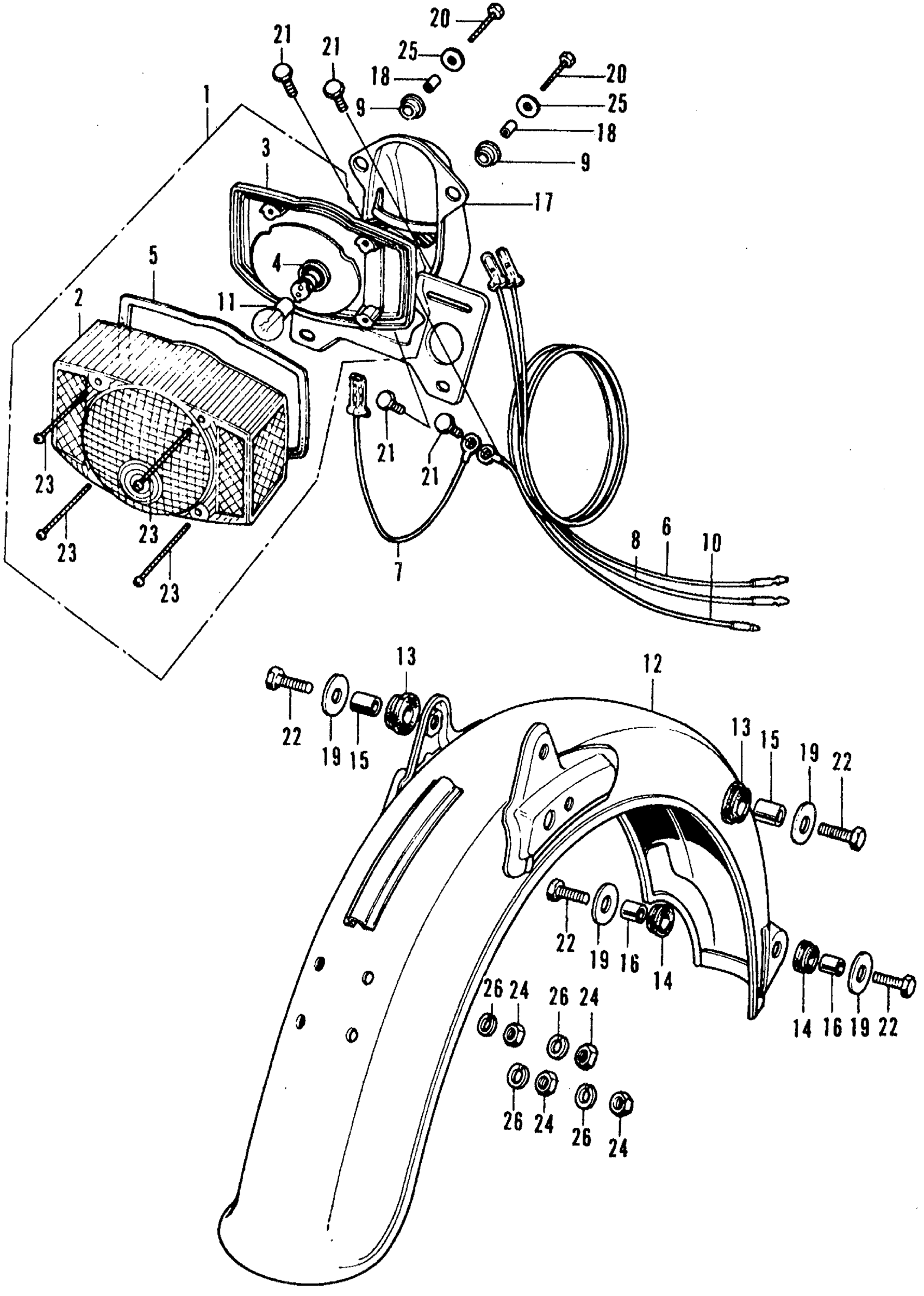 Honda CL70K3A MOTORCYCLE, JPN, VIN# CL70-1300001 TAILLIGHT + REAR FENDER K3 Diagram