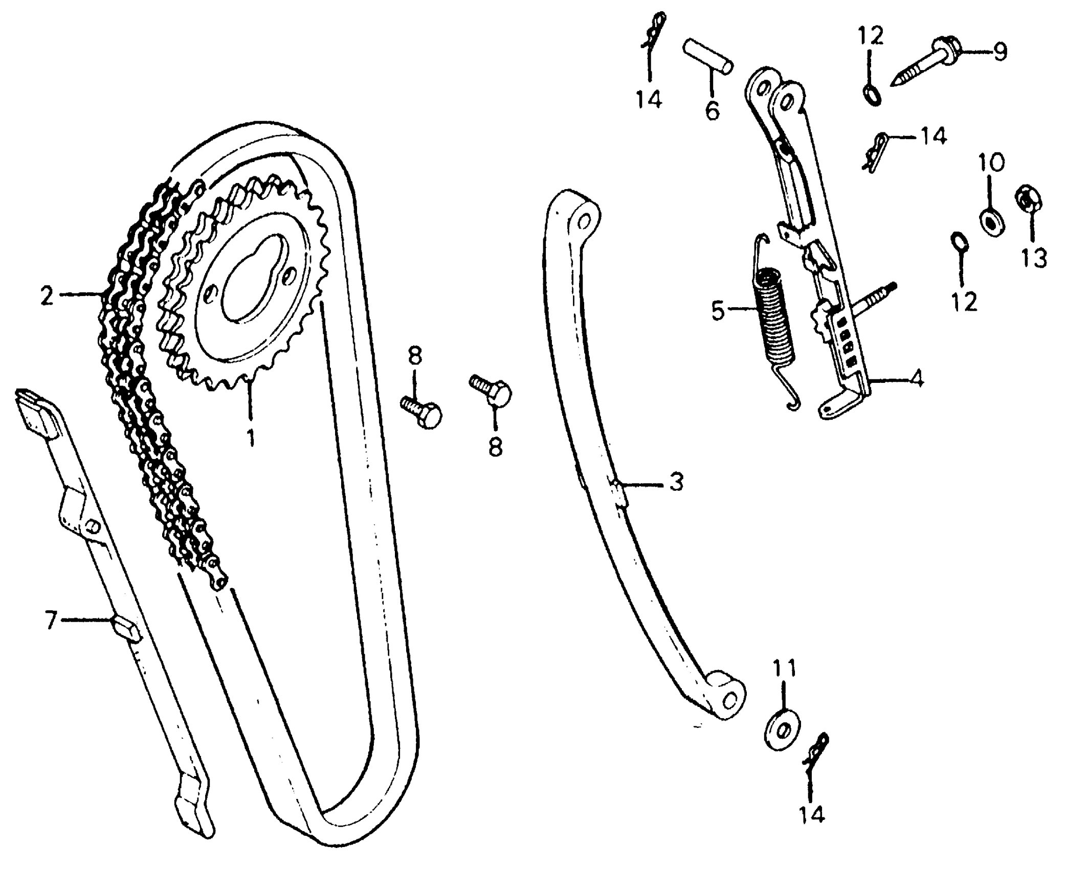Honda CM185TA (78) TWINSTAR, JPN, VIN# CM185T-2000014 CAM CHAIN + TENSIONER Diagram