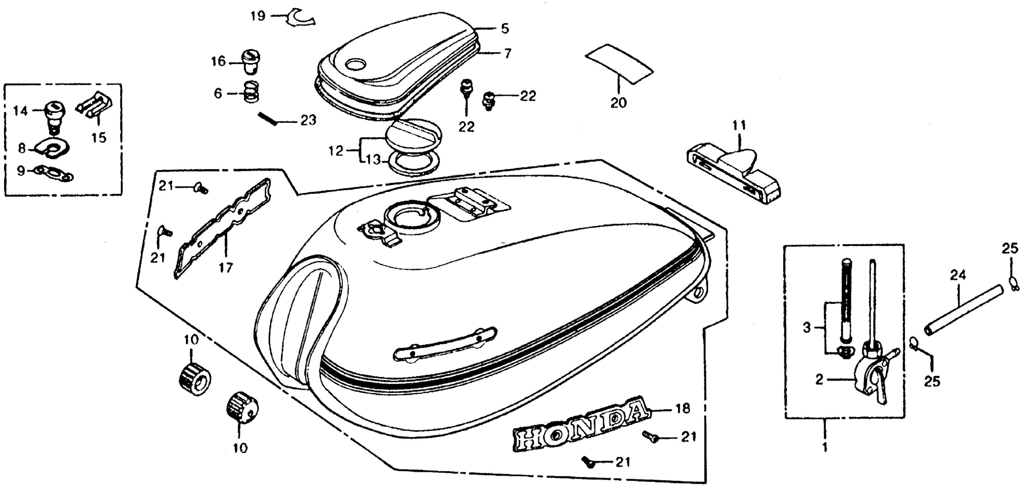 Honda CM185TA (78) TWINSTAR, JPN, VIN# CM185T-2000014 FUEL TANK + FUEL VALVE Diagram