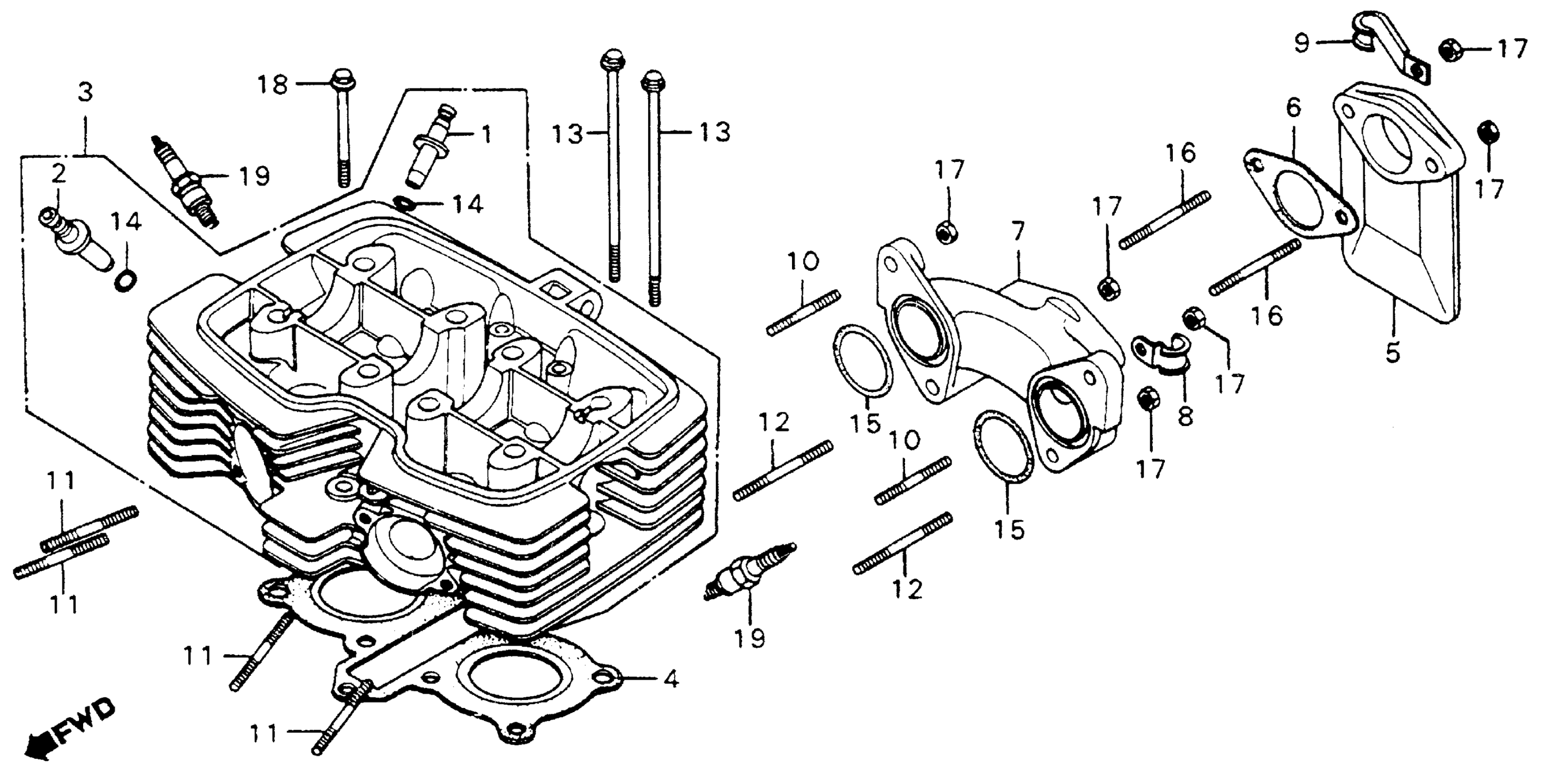 Honda CM200TA (81) TWINSTAR, JPN, VIN# JH2MC010-BM100001 TO JH2MC010-BM119610 CYLINDER HEAD Diagram