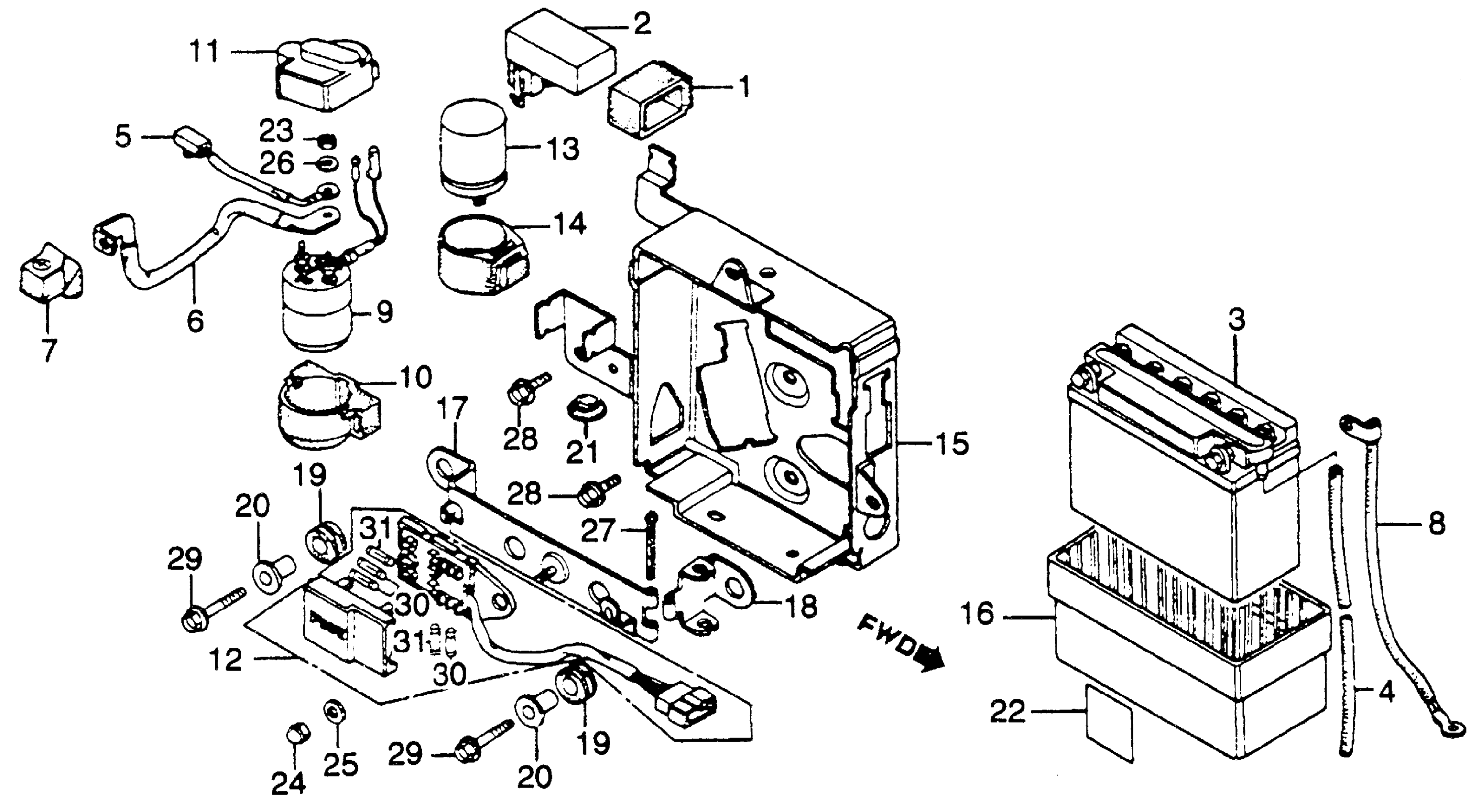 Honda CM250CA (83) 250 CUSTOM, JPN, VIN# JH2MC060-DK100009 TO JH2MC060-DK106422 BATTERY + C.D.I. UNIT Diagram