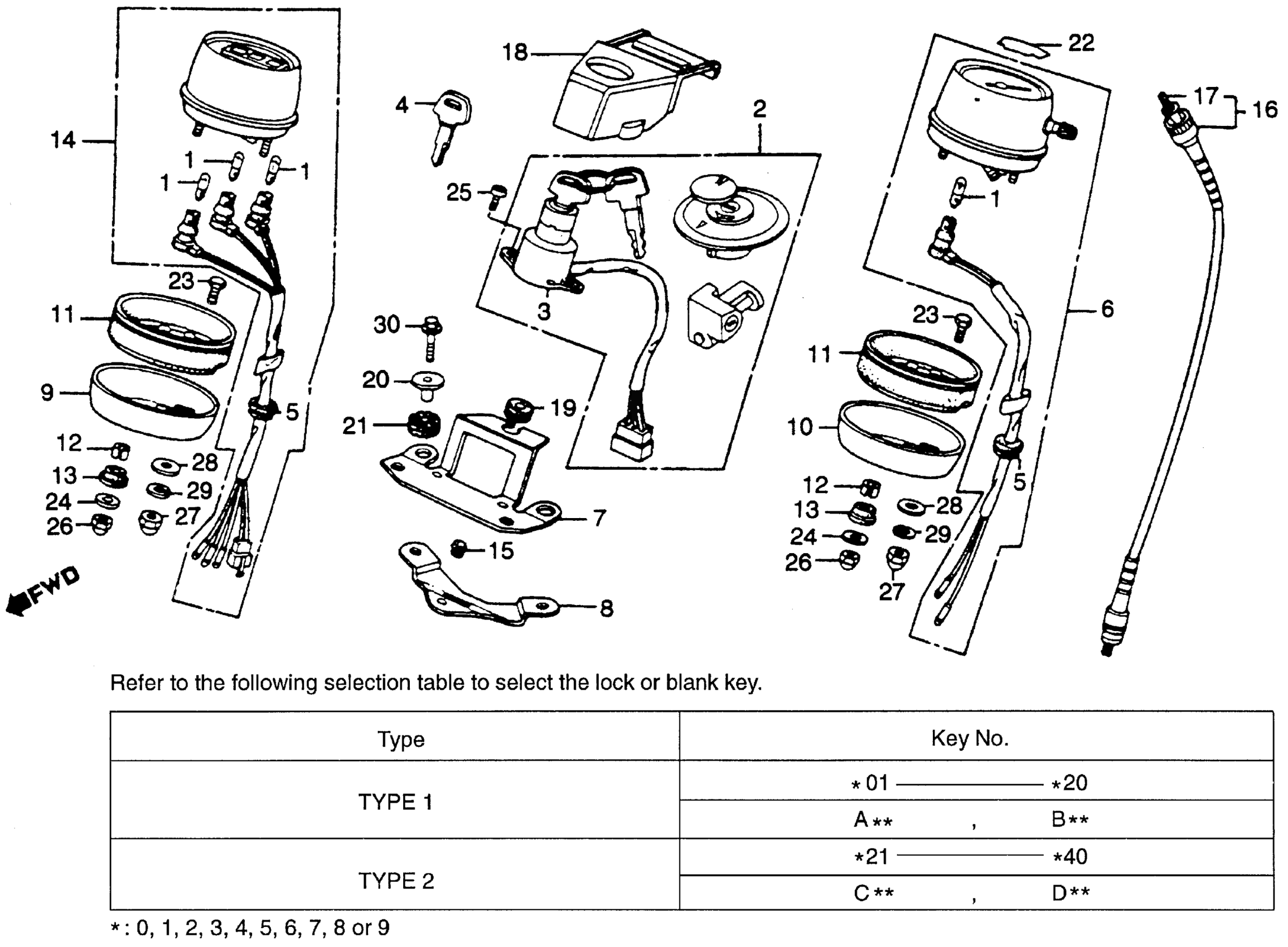 Honda CM250CAC (83) 250 CUSTOM, JPN, VIN# JH2MC061-DK100005 TO JH2MC061-DK100655 SPEEDOMETER + KEY SET Diagram
