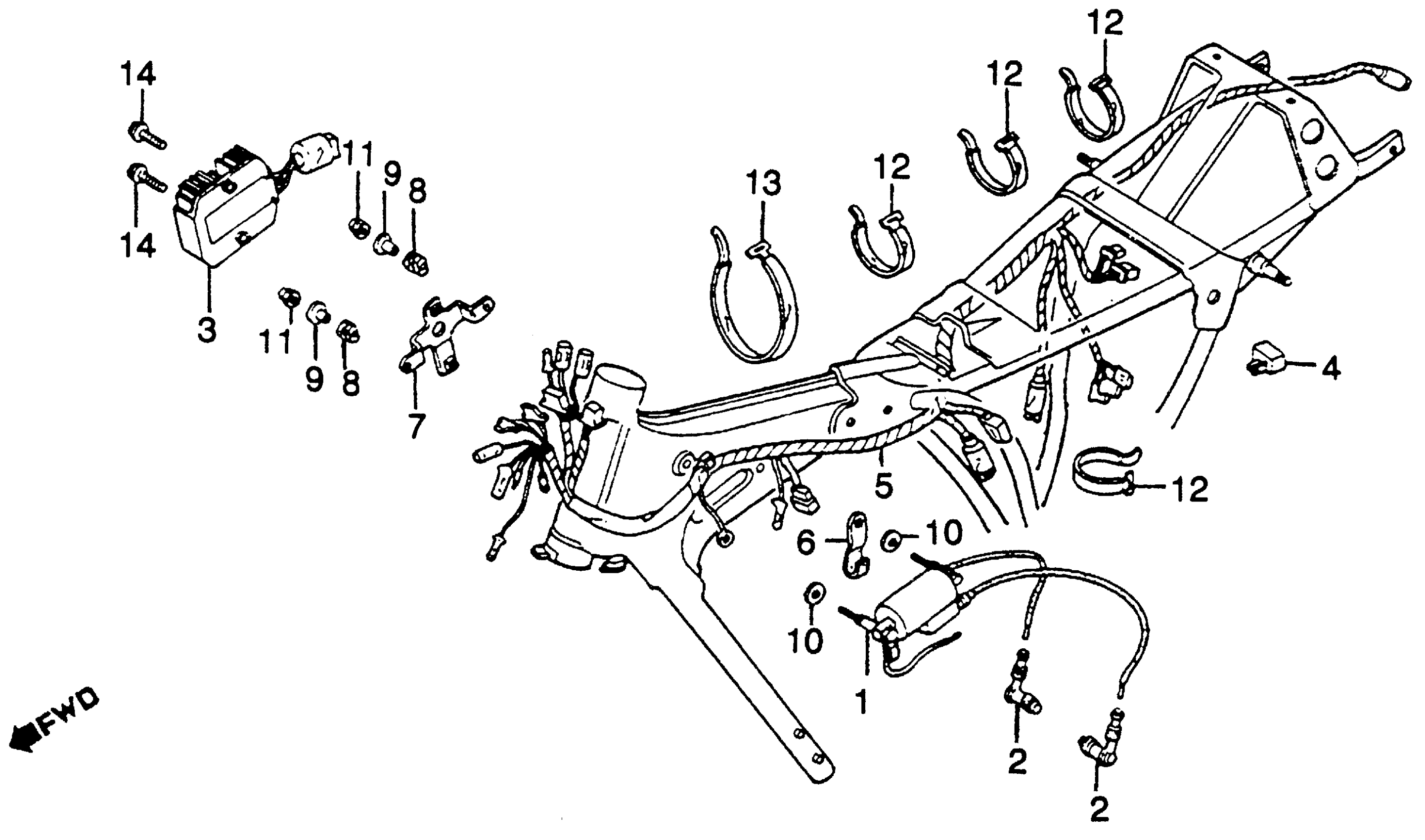 Honda CM250CAC (83) 250 CUSTOM, JPN, VIN# JH2MC061-DK100005 TO JH2MC061-DK100655 WIRE HARNESS + IGNITION COIL Diagram