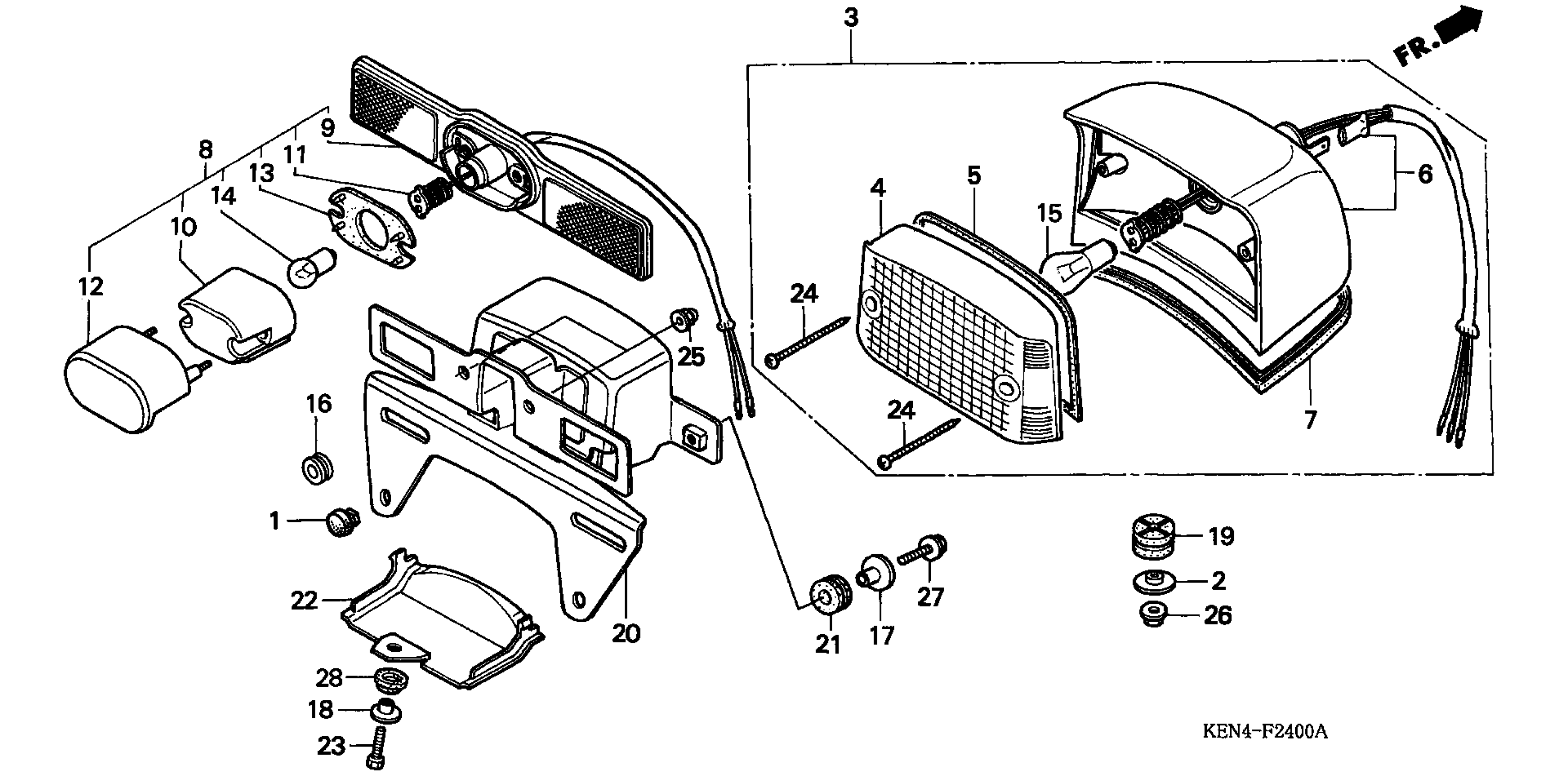 TAILLIGHT UNIT (12V 27/7W) (COO) This part replaces 33701-KR3-671.