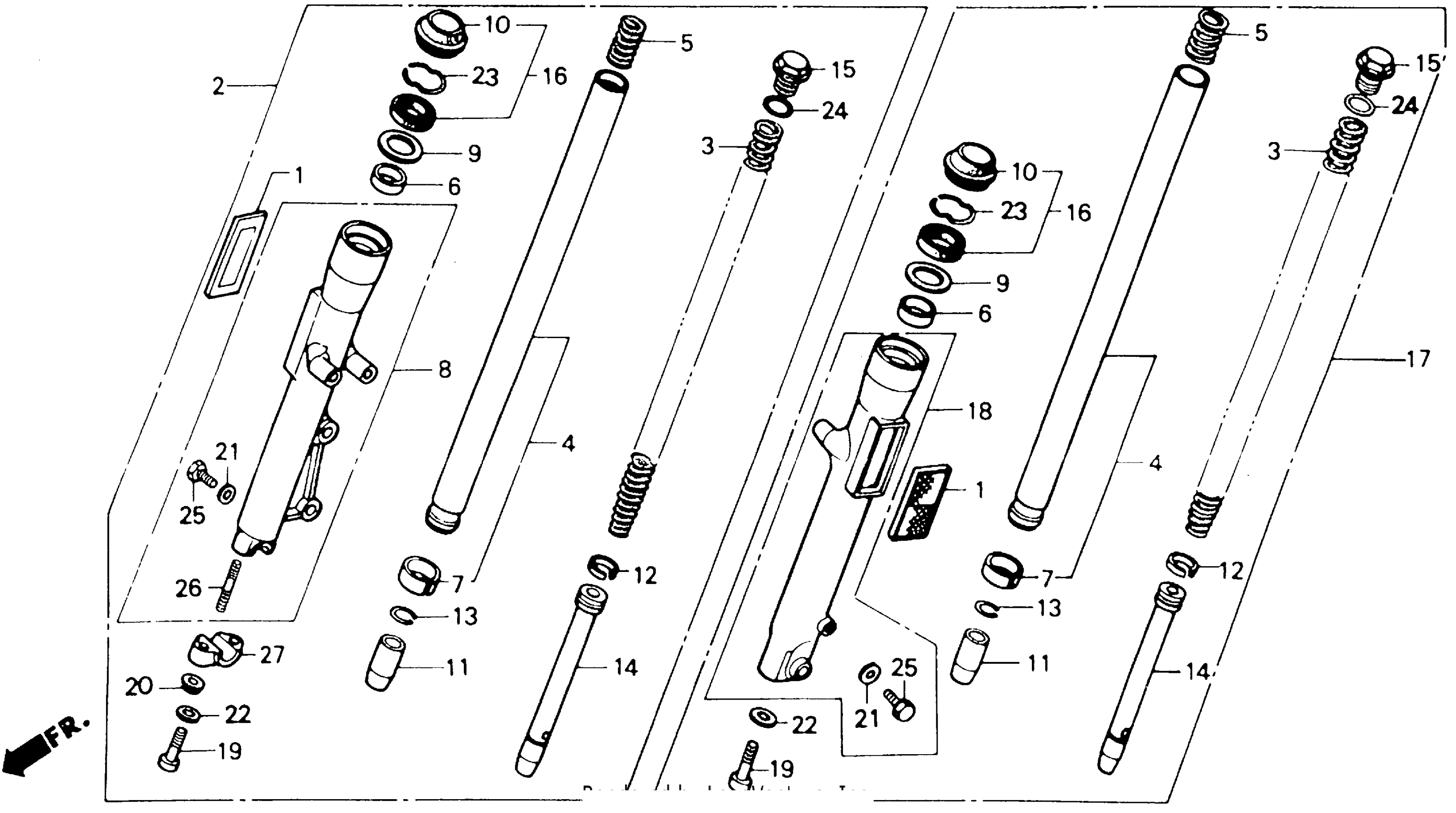 Honda CMX250CAC (86) REBEL 250, JPN, VIN# JH2MC131-GK100001 TO JH2MC131-GK103286 FRONT FORK Diagram
