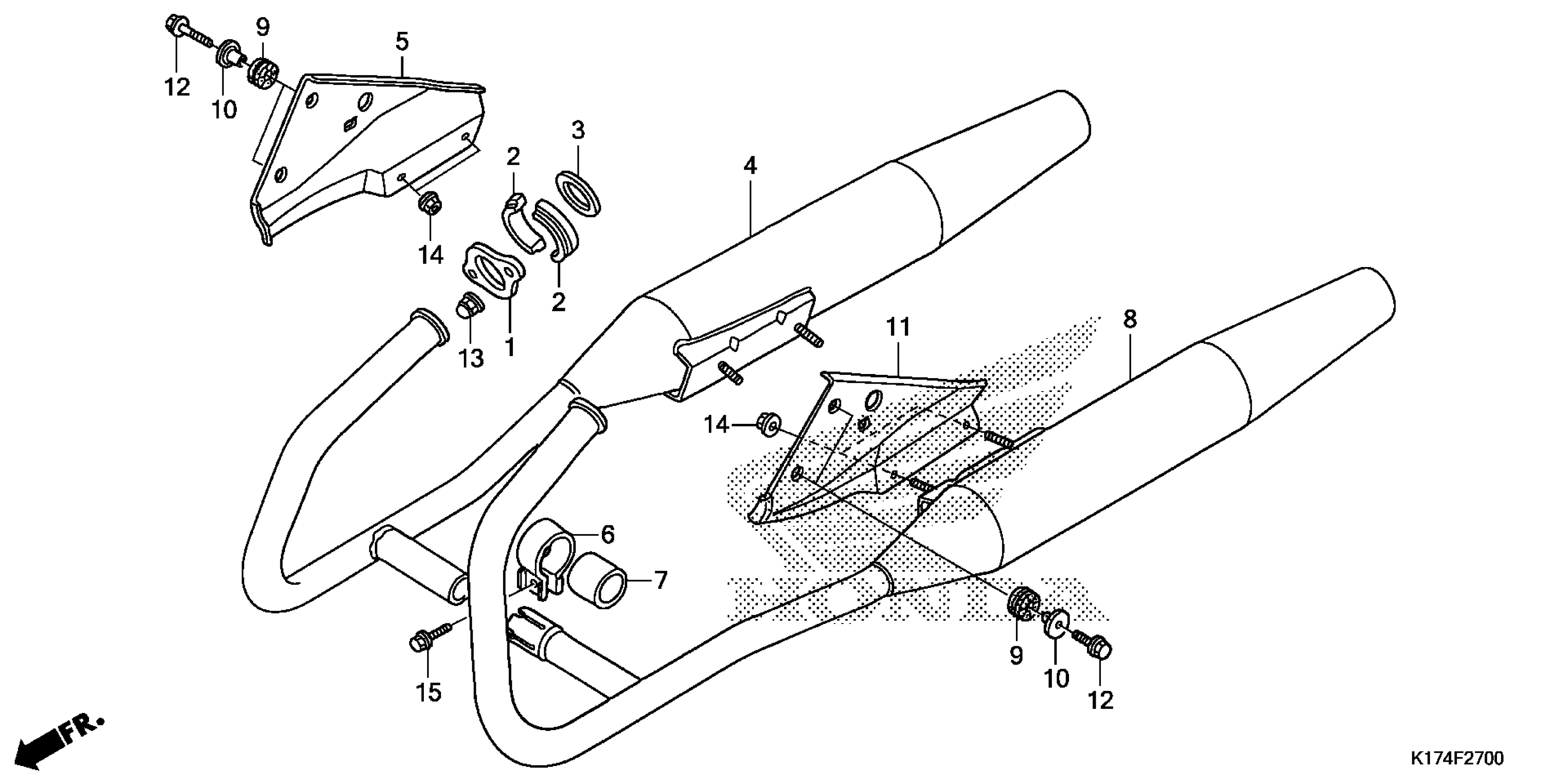 MUFFLER, R. EX. This part replaces 18300-KEN-305.