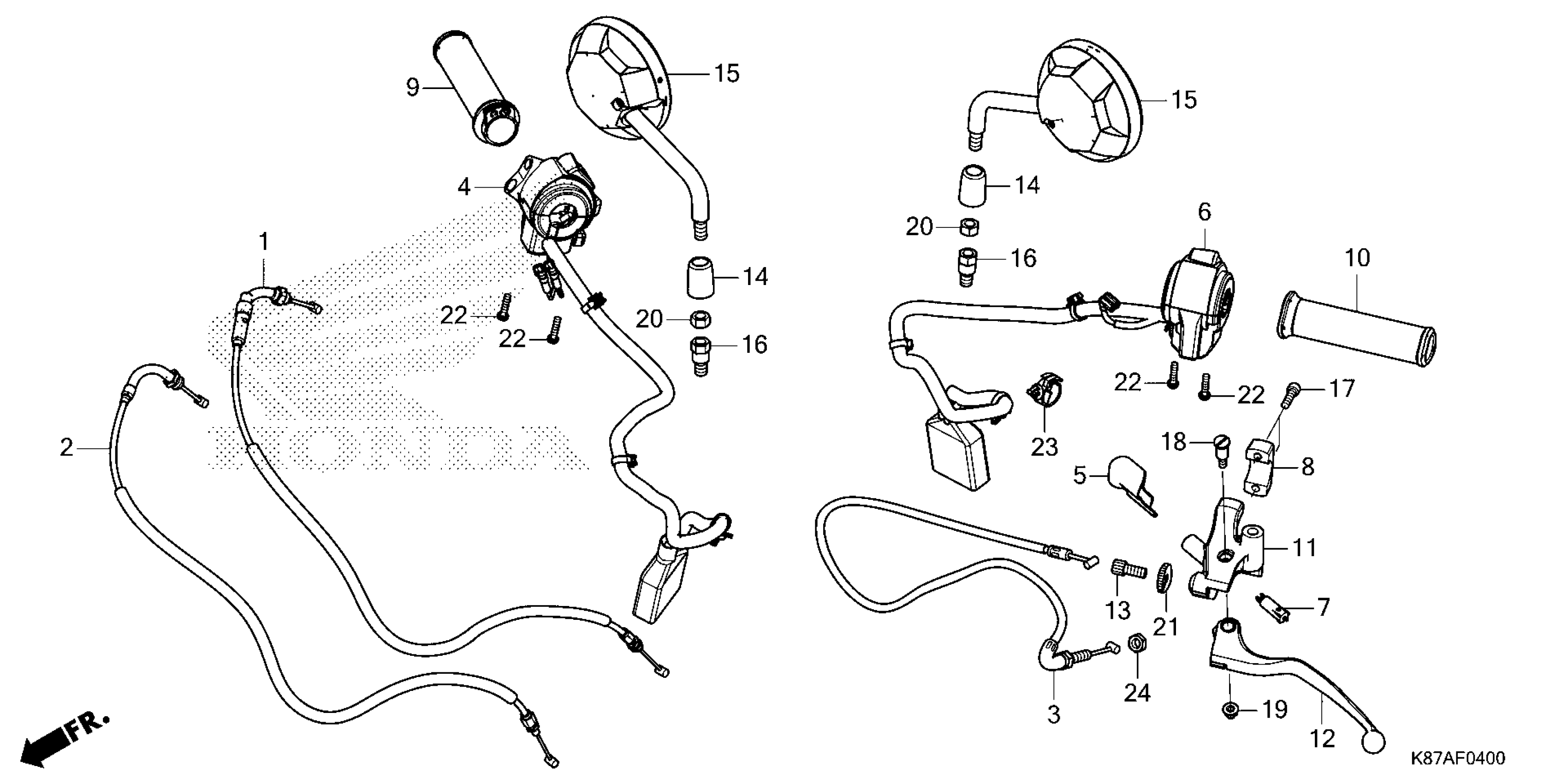 Honda CMX300A (23) REBEL 300 ABS, THA, VIN# MLHNC530-P5600001 TO MLHNC530-P5699999 HANDLE LEVER@SWITCH@CABLE@MIRROR Diagram