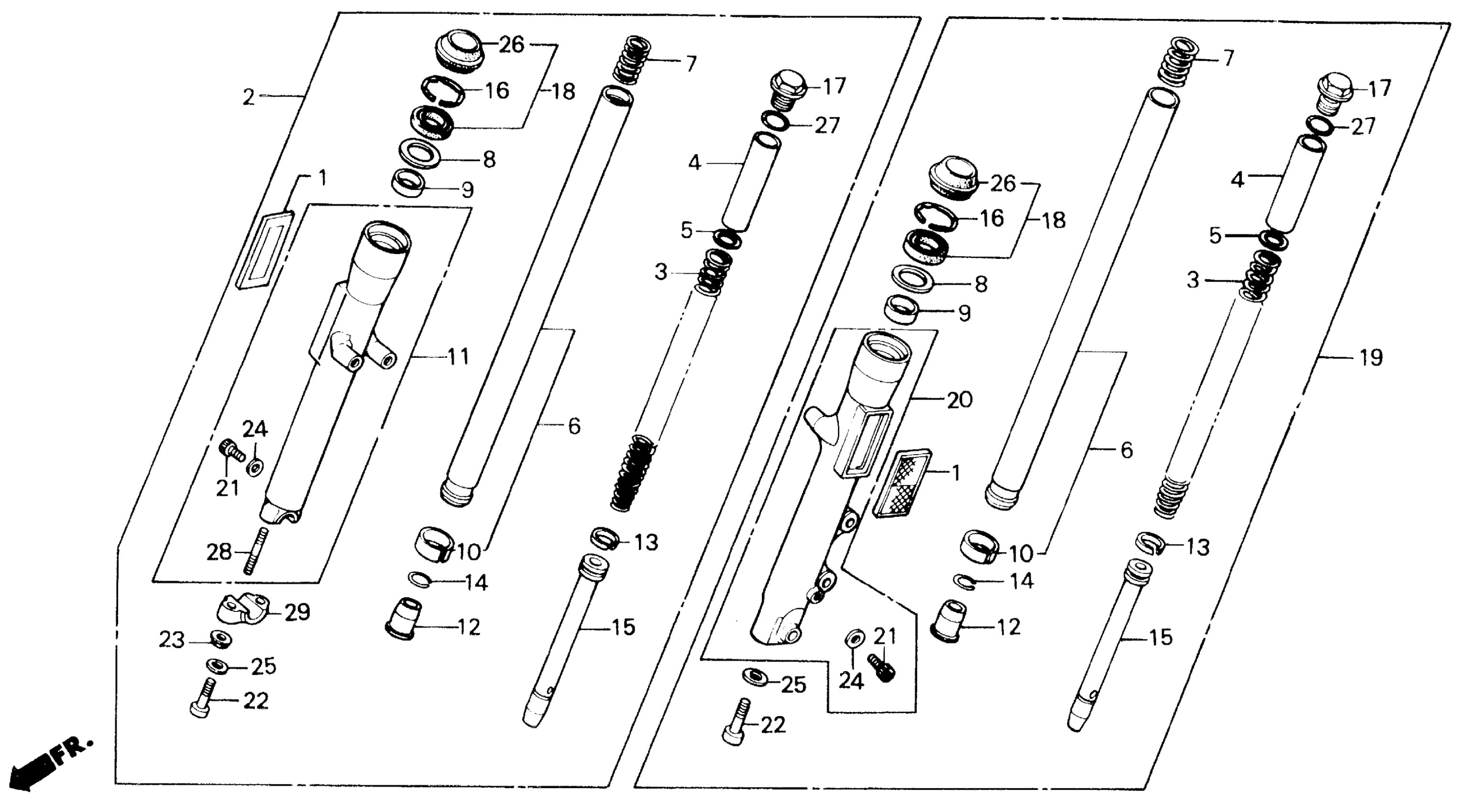 Honda CMX450CA (87) REBEL 450, JPN, VIN# JH2PC170-HM100001 TO JH2PC170-HM104034 FRONT FORK Diagram