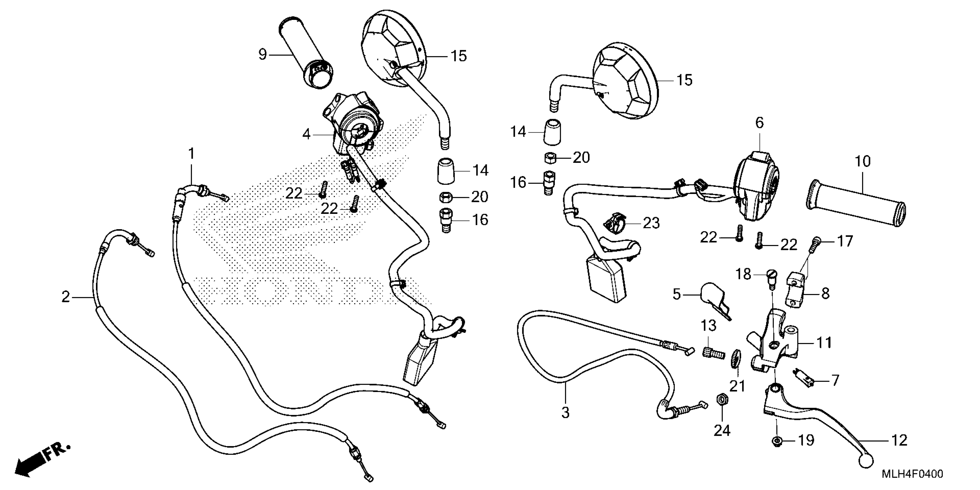 Honda CMX500A (24) REBEL 500 ABS, THA, VIN# MLHPC560-R5700001 TO MLHPC560-R5799999 HANDLE LEVER@SWITCH@CABLE@MIRROR Diagram