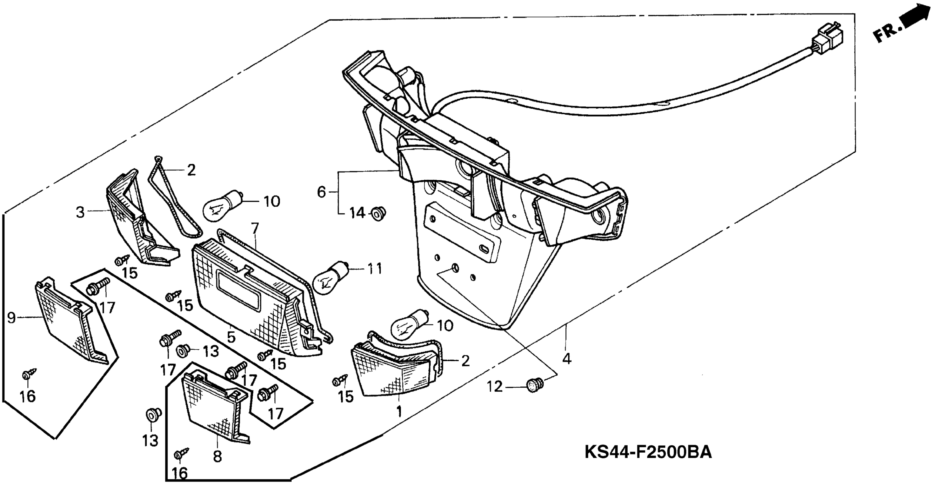 Honda CN250A (97) HELIX, JPN, VIN# JH2MF020-VK200001 TAILLIGHT Diagram