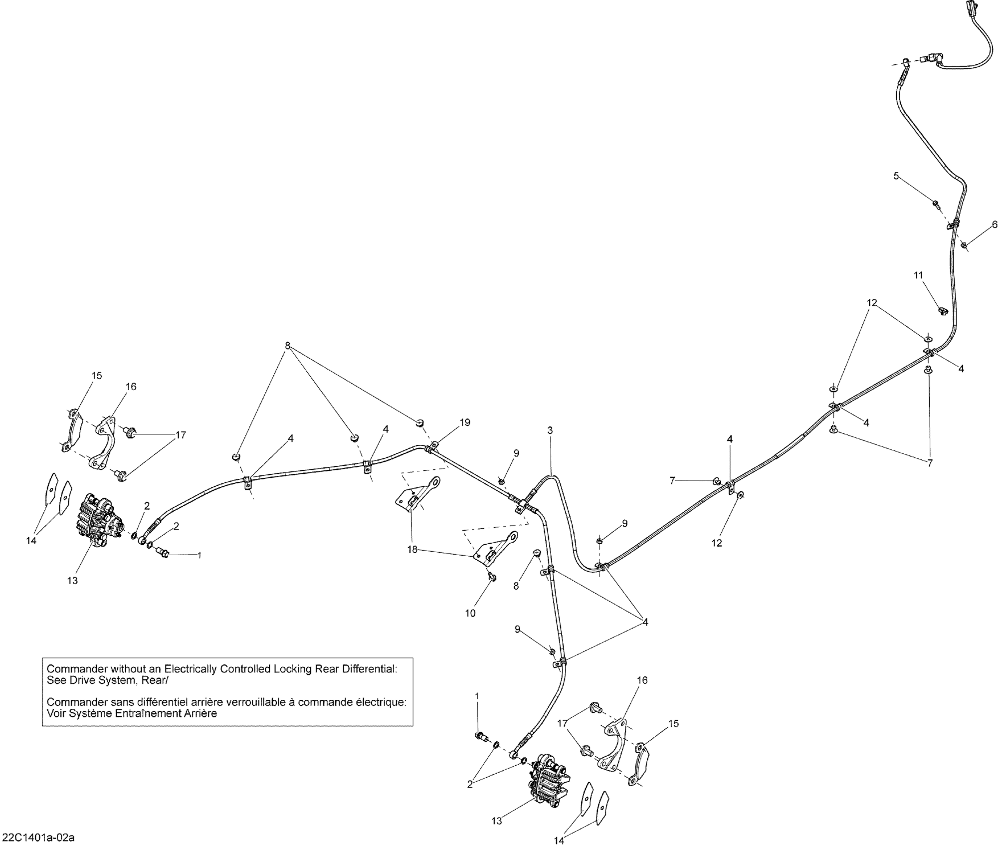 Can-Am Commander 1000 STD, DPS, XT, XT-P, 2014 Brakes - With Locking Rear Differential_22C1402a Diagram