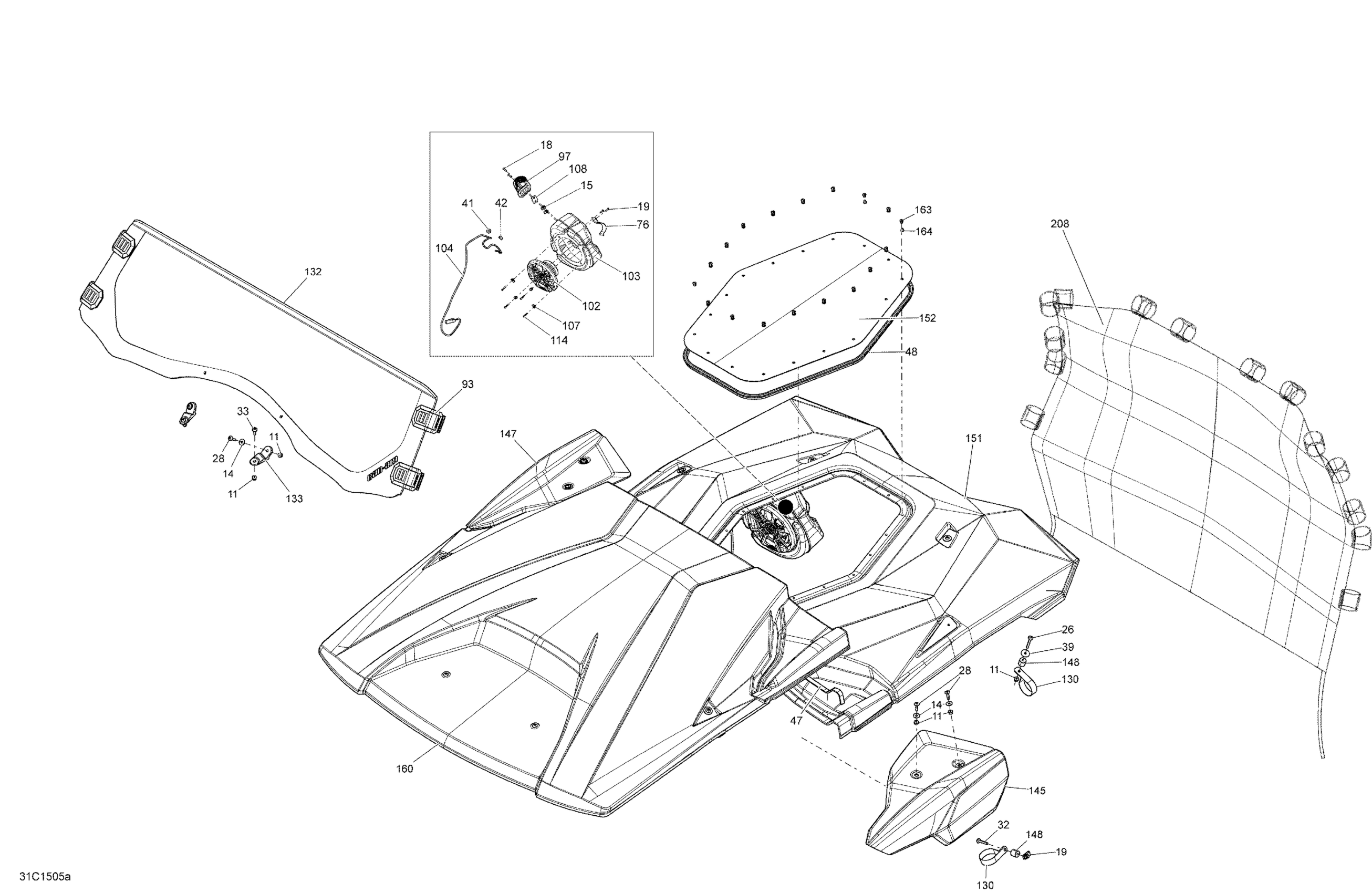 Can-Am Commander MAX 1000_LTD, 2015 Body And Accessories Roof And Windshield_31C1505a Diagram