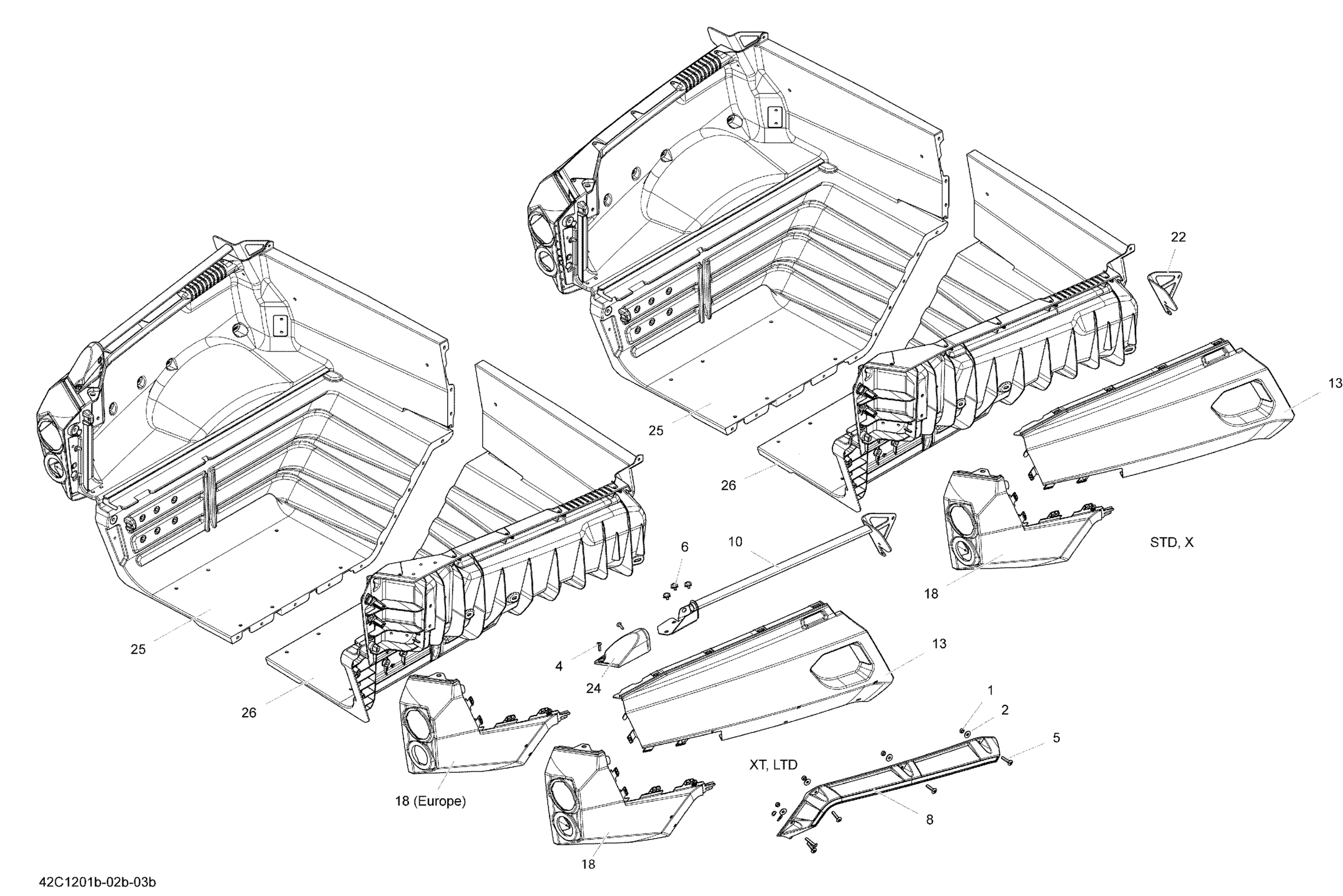 Can-Am Commander STD, XT, 800R EFI, 2012 Rear Cargo Box Body Diagram