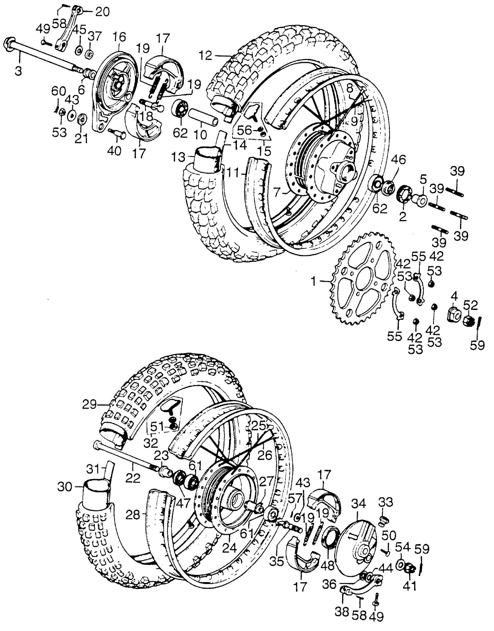 Honda CR125M1A MOTORCYCLE, JPN, VIN# CR125M-2000006 TO CR125M-2018555 FRONT WHEEL + REAR WHEEL Diagram