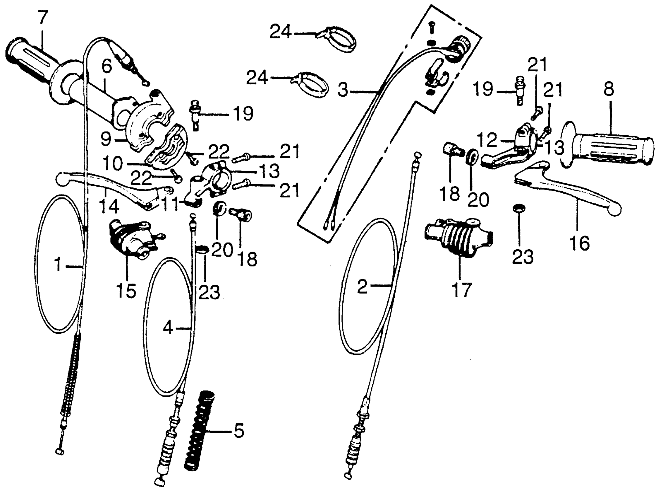 Honda CR125MA (76) ELSINORE, JPN, VIN# CR125M-3000006 TO CR125M-3011345 HANDLE LEVER + SWITCH + CABLE Diagram
