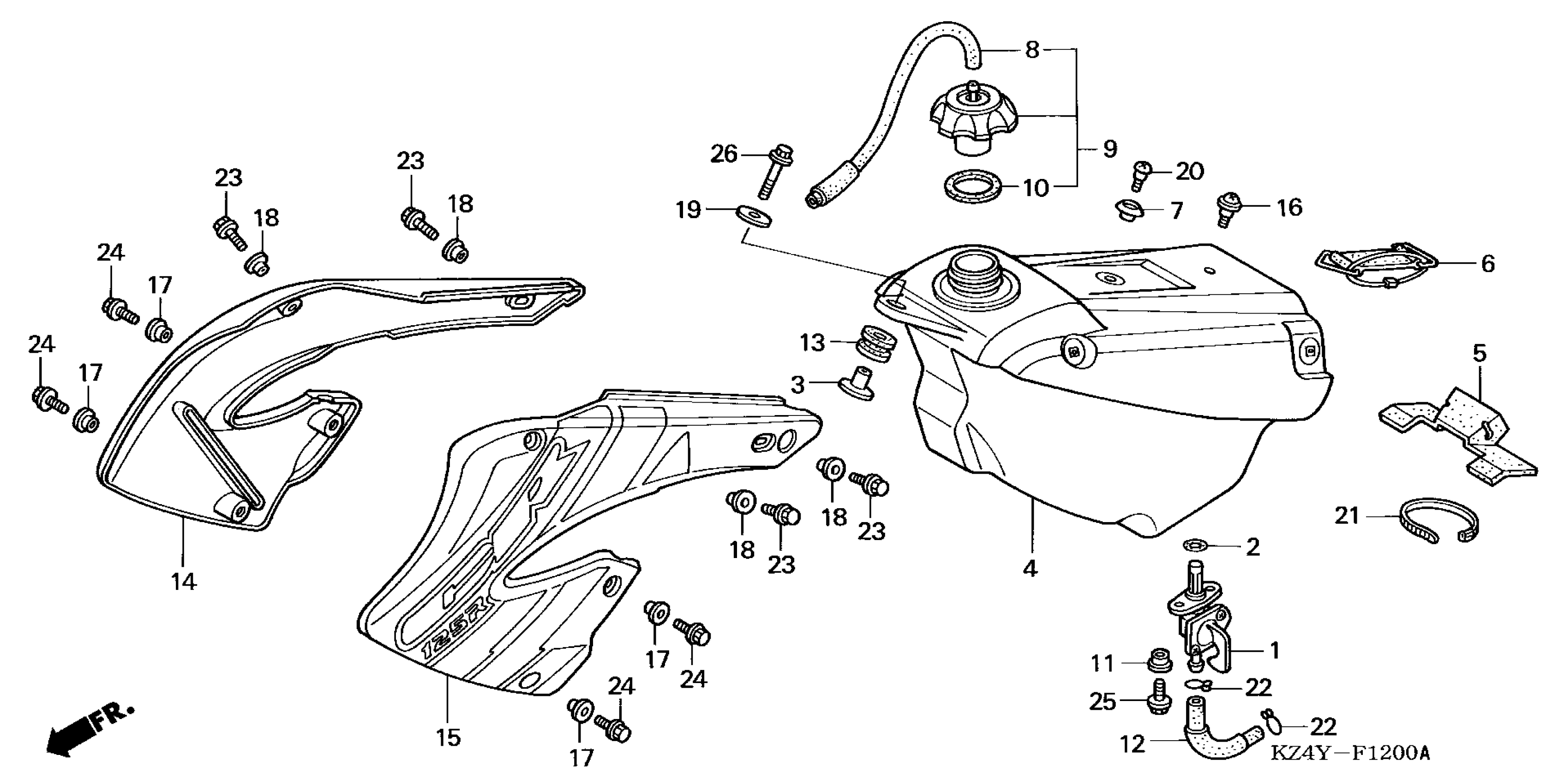 Honda CR125RA (01) MOTORCYCLE, JPN, VIN# JH2JE013-1M300001 FUEL TANK Diagram