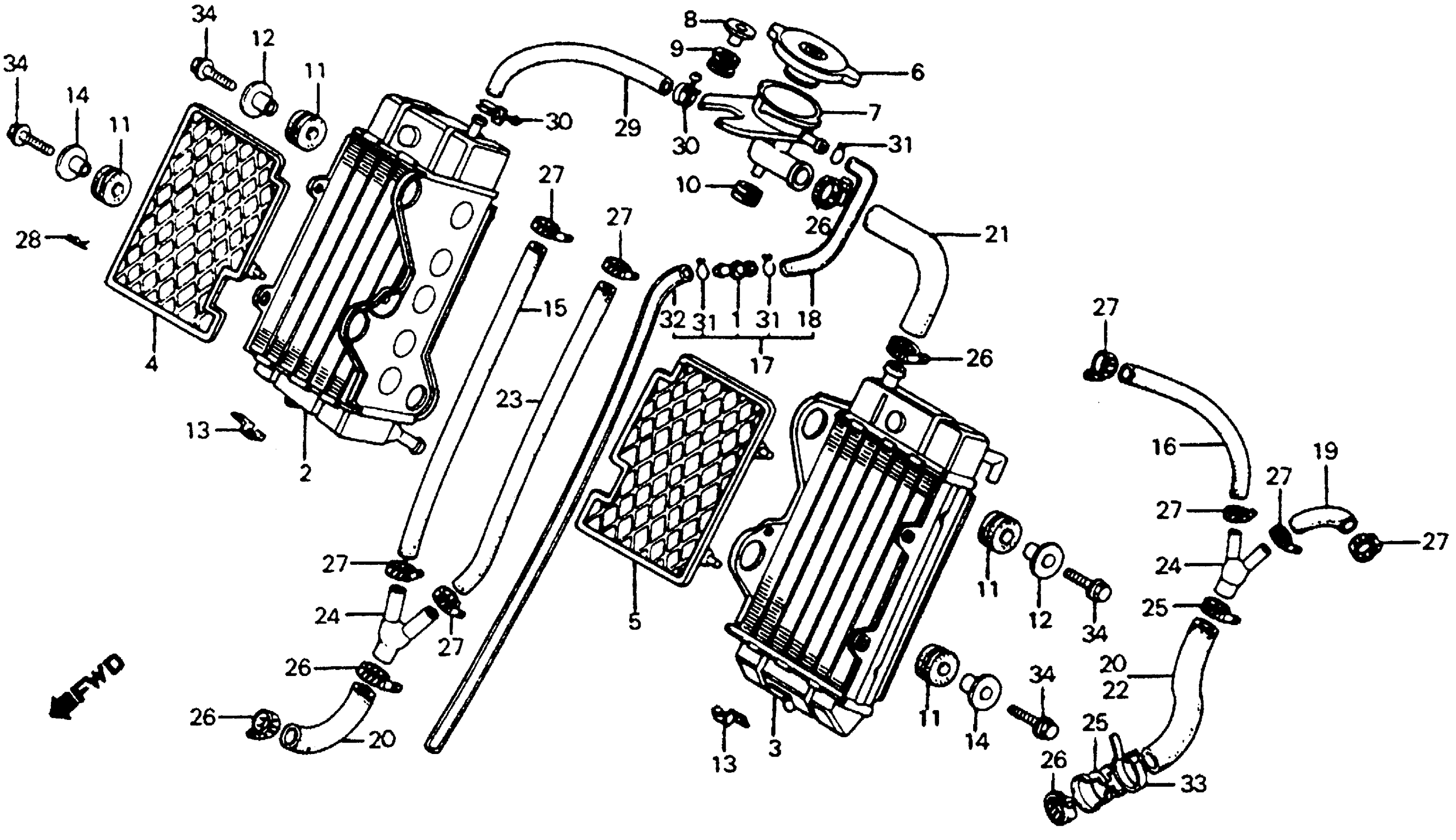 Honda CR125RA (82) MOTORCYCLE, JPN, VIN# JH2JE010-CC300001 TO JH2JE010-CC307692 RADIATOR 82 Diagram