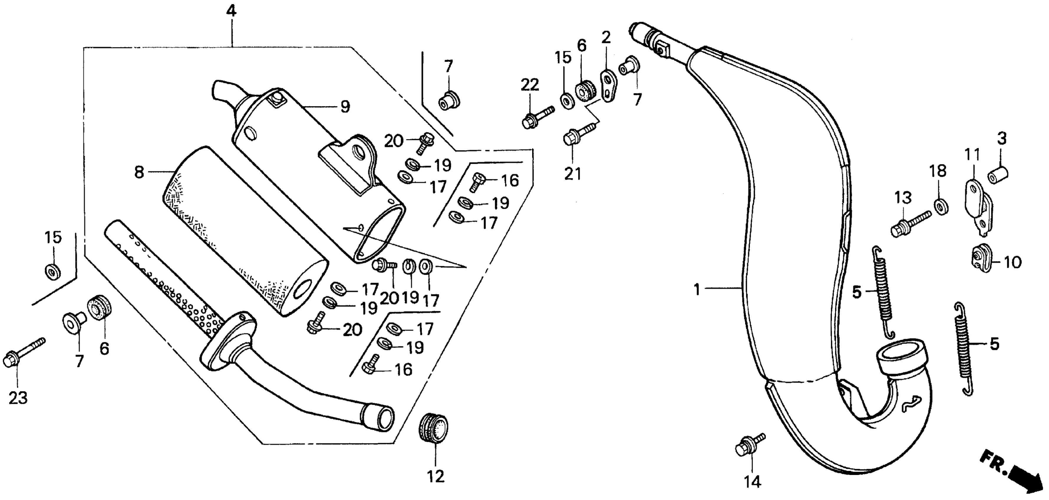 Honda CR125RA (90) MOTORCYCLE, JPN, VIN# JH2JE010-LM100013 TO JH2JE010-LM103521 MUFFLER Diagram