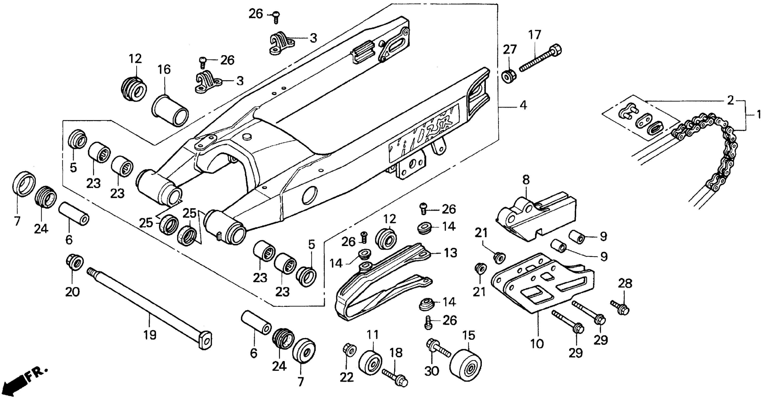Honda CR125RA (92) MOTORCYCLE, JPN, VIN# JH2JE010-NM300006 TO JH2JE010-NM302172 SWINGARM 91-92 Diagram